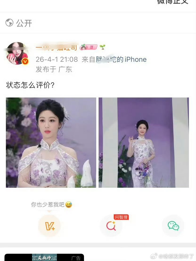 杨紫今晚直播直接火了!淡紫旗袍也太好看了杨紫4月1号晚上抖音养元青的直播刚