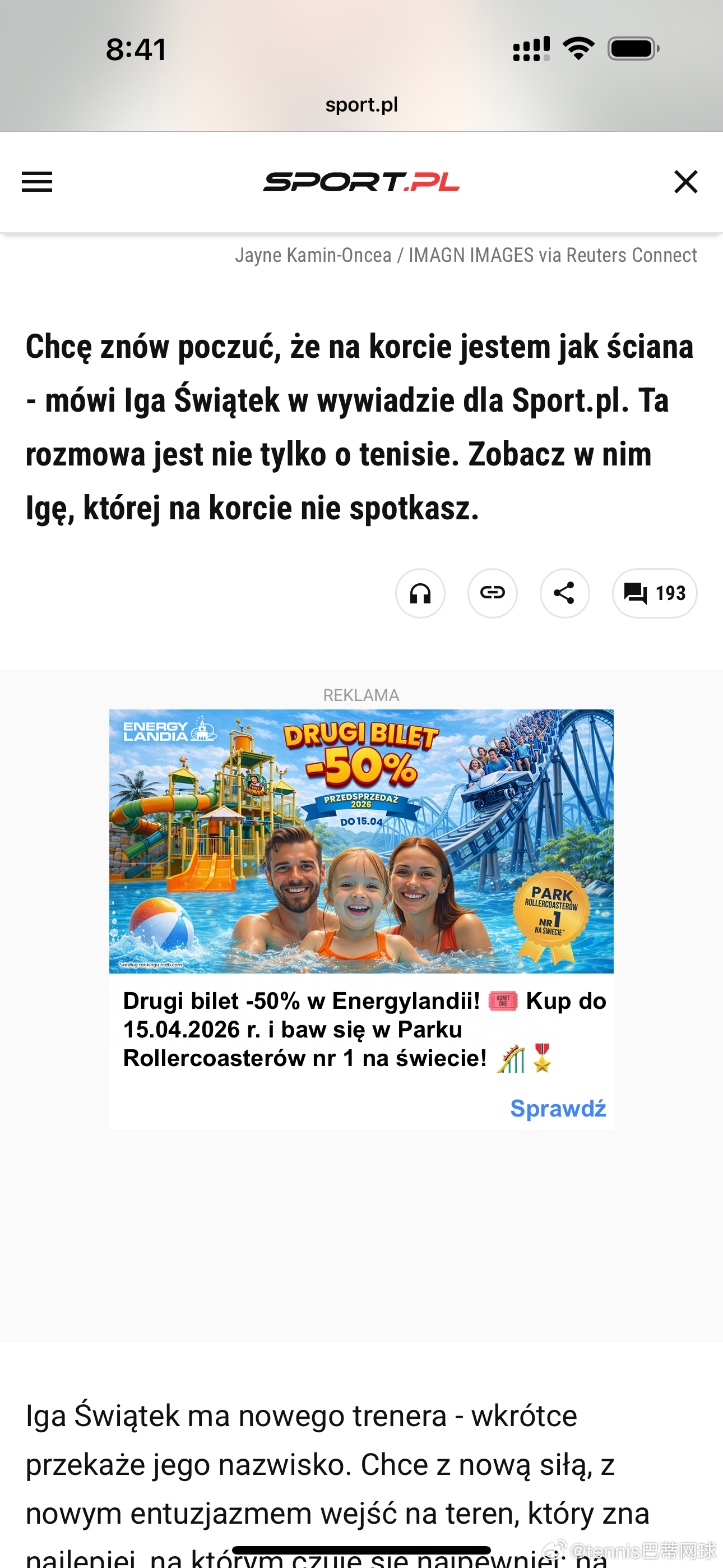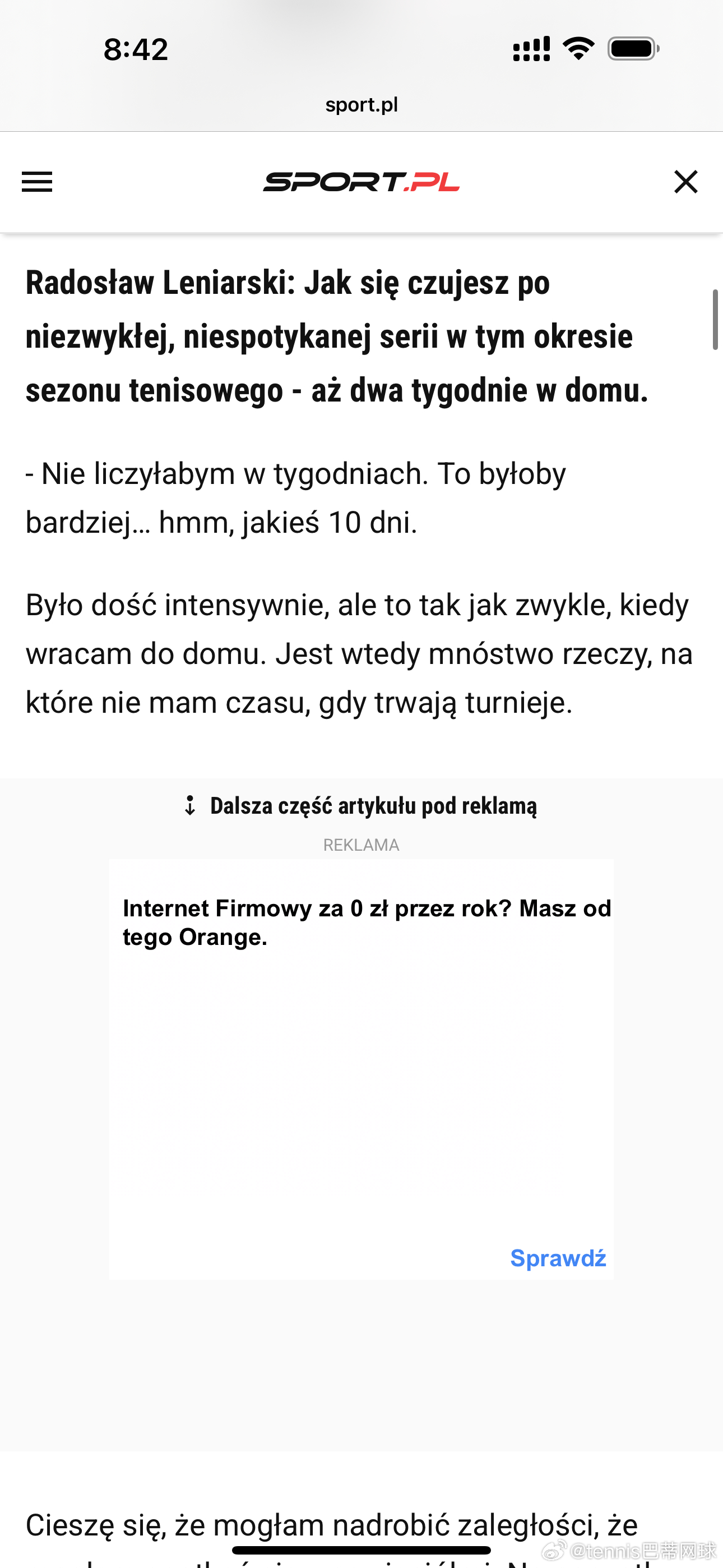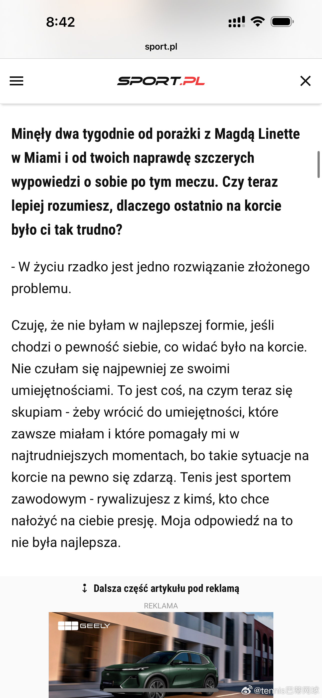 斯瓦泰克:“和谁合作,是我自己决定的。说实话,我看到的那些负面言论……我尽量不去看,但有些还是会传到我耳朵里……基本都是假新闻,和为了博眼球编造出来的说法。人们根本不知道真实情况是怎样的。