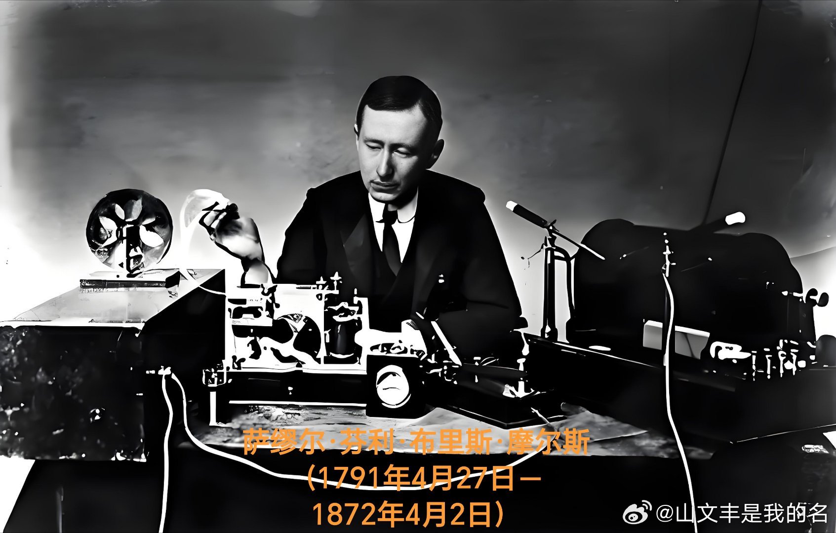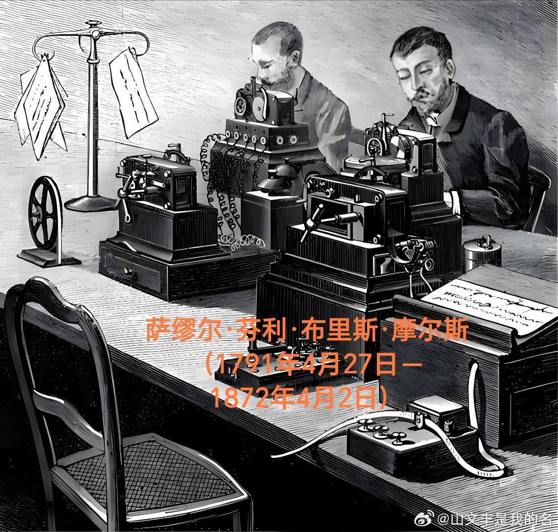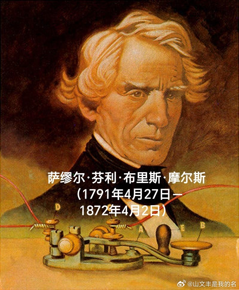 萨缪尔·芬利·布里斯·摩尔斯(1791年4月27日-1872年4月2日),美国画家、电报发明者。出生于马萨诸塞州查尔斯顿,1810年毕业于耶鲁学院。早期以浪漫主义风格油画闻名,代表作品包括《降落的朝圣者》,曾为总统詹姆斯·门罗绘制肖像画。在1832年的航海旅行中,当时还是画家的摩尔斯遇到了杰克逊做的电磁体实验,并对电磁学产生了兴趣。1839年他发布了他的第一项发明“摩尔斯”码,他的同行发明的电报就是运用“摩尔斯”码来传递信号的。1844年摩尔斯从华盛顿到巴尔的摩发出了人类历史上的第一份电报。摩尔斯于1872年4月2日死于纽约家里,享年80岁。