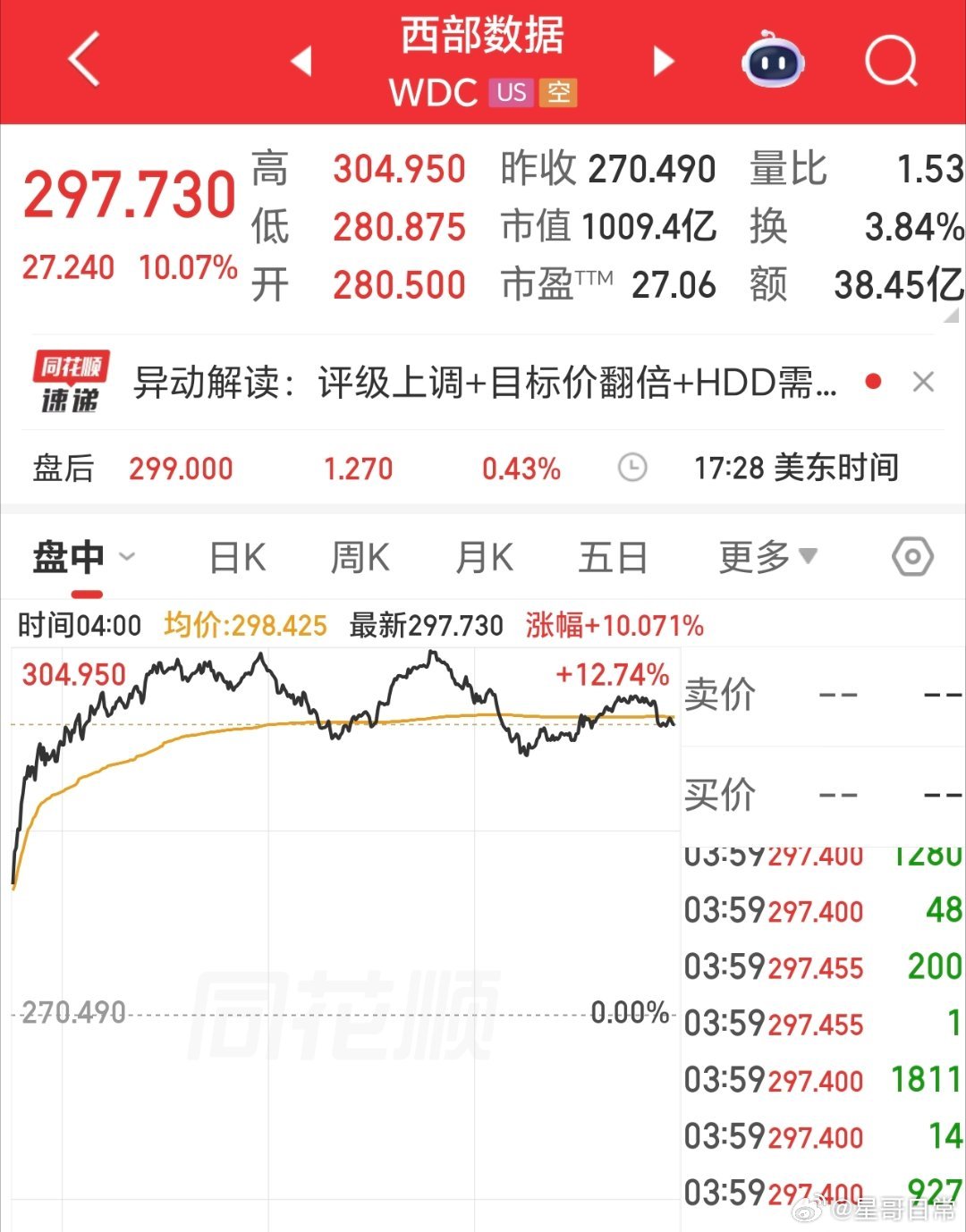 隔夜美股,存储芯片股集体大涨。大A会不会跟一下