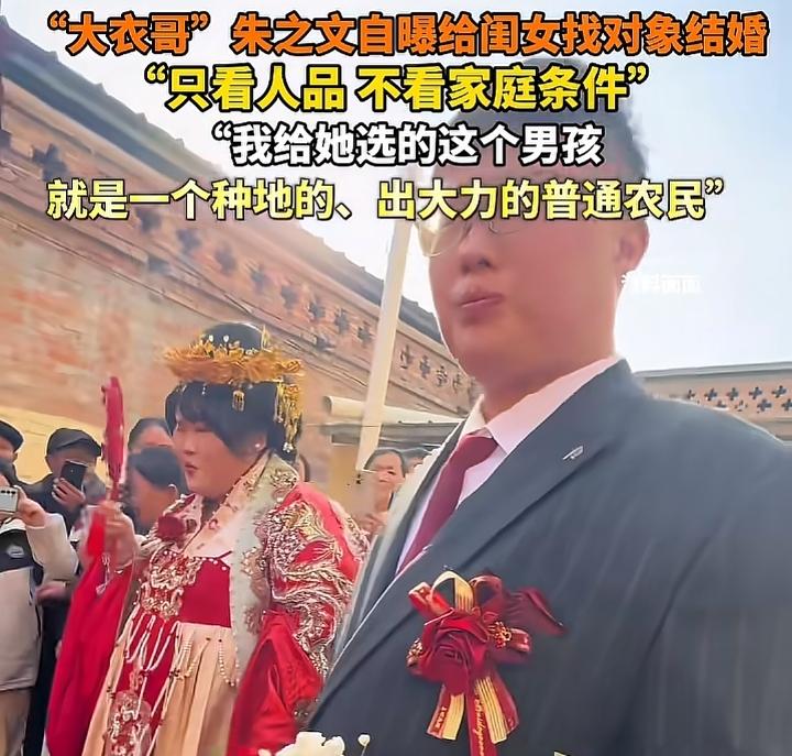 朱之文,绝对是人间清醒。 他给女儿找对象,不找帅的,也不看家庭条件,最终找了一个出大力种地的男人,朱之文觉得,这个男人老实巴交,值得把女儿托付给他。 要说朱之文火这么多年,也不是没有道理,不仅是不忘初心,始终保持着自己最初的农民形象,唱歌更是矜矜业业,绝对是一股清流。 给女儿找对象,按理来说,他的家庭条件很是优越,起码在当地来讲是如此,所以眼光会放高,因此找女婿,他应该会选择高大帅气,家庭实力又强的男人。 但朱之文没有这么做,因为他看清事实,自己家庭条件优越是事实,但女儿的自身条件实在是一言难尽,如果不是朱之文的女儿,嫁出去都是有点难的,毕竟这个看脸和身材的时代,朱之文的女儿一样都没有占。 因此朱之文选择了一个种地的女婿,虽然门不当户不对,但起码真心真意对女儿好,这才是最重要的。 所以说朱之文绝对是人间清醒,从来不会因为自己身价倍增,就看不起普通人,这样的言行举止,真的值得娱乐圈的大明星们学习。