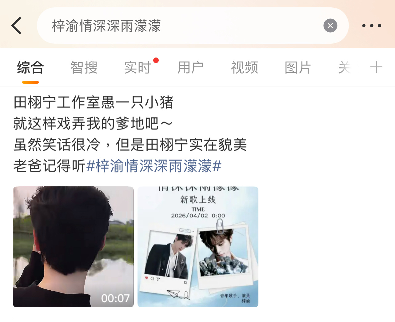 梓渝的热搜,怎么会有田栩宁?梓渝情深深雨濛濛