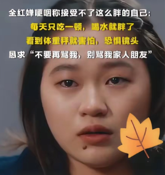 全红婵一天只吃一顿饭引热议: “喝水都胖,我接受不了这么胖的自己!”全红婵被体重困扰,面对镜头,任泪水肆意 她才 19 岁,为了控体重拼尽全力,每天只敢吃一顿饭,饿到浑身难受,可体重还是降不下来,甚至自嘲喝水都会增重。她说根本接受不了现在的自己,不敢照镜子、害怕镜头,连短裤裙子都不敢穿,只能把自己捂得严严实实,看到体重秤就恐惧。 跳水运动员青春期发胖,全红婵的前辈伏明霞、郭晶晶全都遇到过。 心疼全妹,只要健康,正常生长,才是最重要的。大家善言结善缘,全红婵也只是一个小女孩