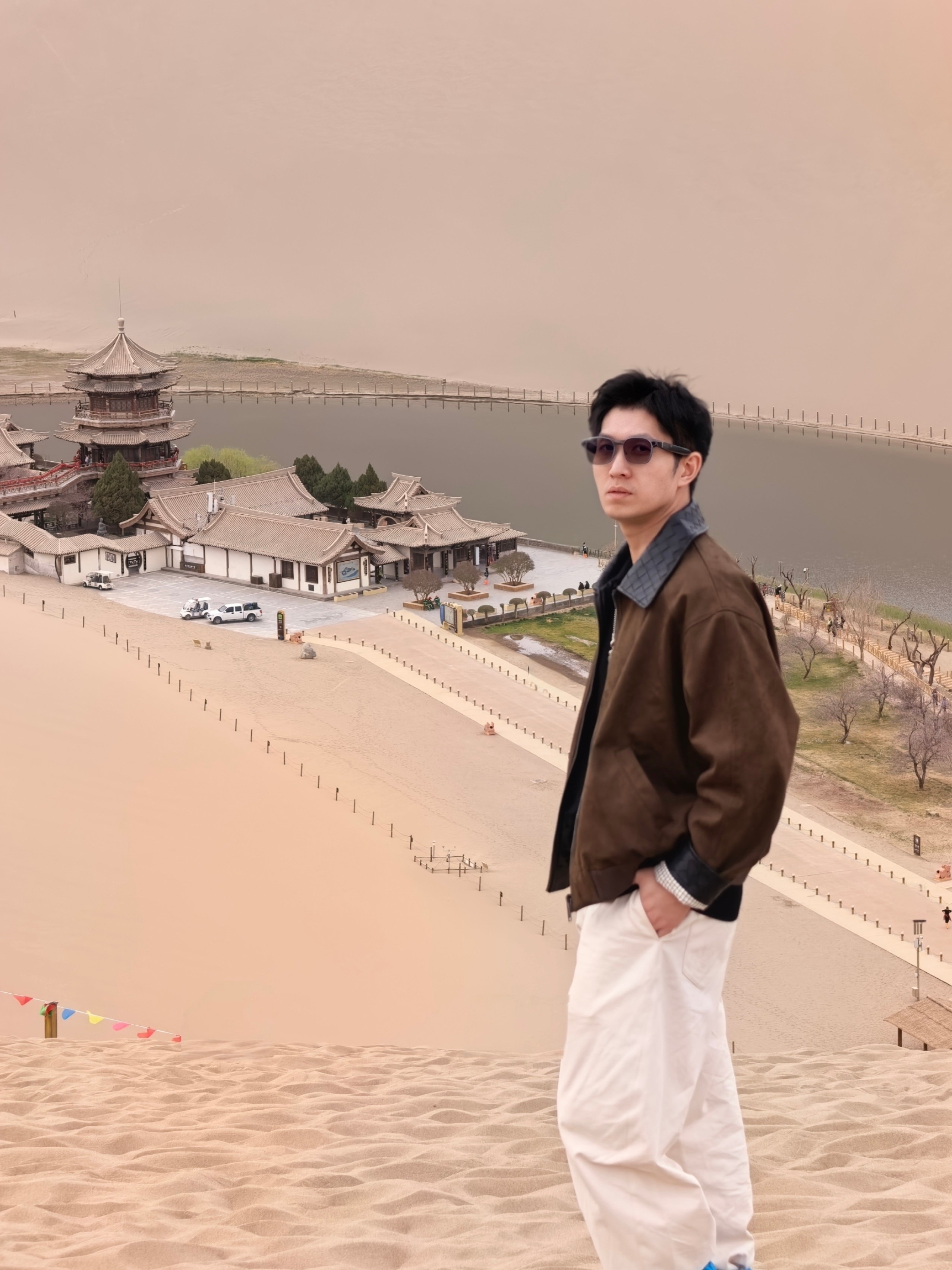 敦煌一日游,打卡小学课本里的日月泉唯一可惜天气不佳没有看到日落