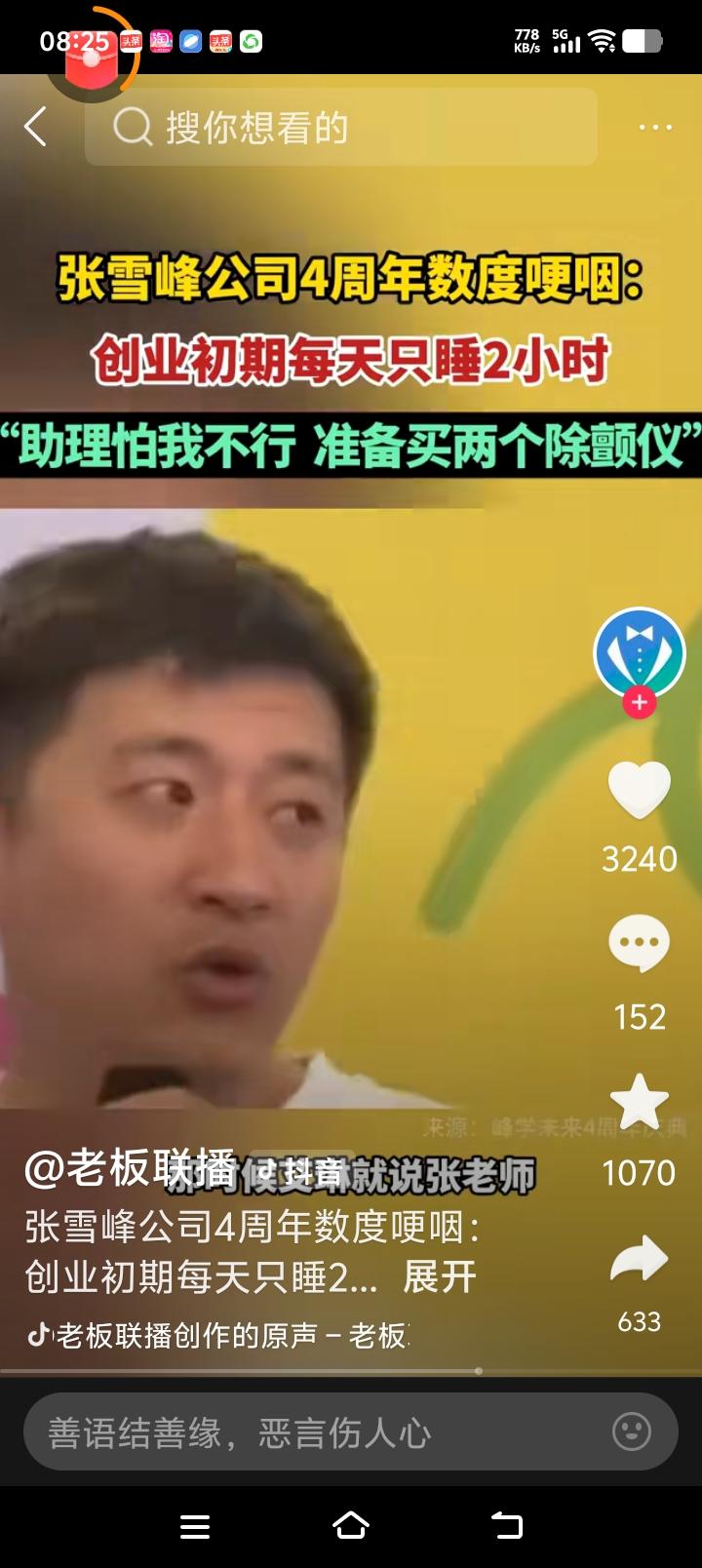 张老师助理曾经要给他买心脏除颤仪! 张老师坦言,在2021年创业初期,公司从北京西城往苏州搬迁,他每晚只能睡2到4小时,看他太累了,担心他扛不住,助理艾琳要为他买两个除颤仪,一个放在公司,一个放在背包,担心他过随时去! 要知道5年前张老师才36岁啊,身体在那个时候就埋下危险! 张老师最难的时候熬过来了,可是却倒在了事业上升期! 今天的突然倒下,是张老师这些年来创业打拼积劳成疾造成的! 有人抱怨助理怎么没买啊,即使买了也没用的,因为他本以为最困难的时候都抗过来了,这回应该没事的,结果…… 人啊,注意健康说起来来容易,做起来难,对于不眠不休学习的学子,努力打拼的创业者,谁不希望规律作息,可是太多事自己不亲力亲为就会让自己开始的努力付诸东流,谁能不拼,也许大家会想包括张老师拼到了40岁觉得还年轻,再拼些年,没问题,所有人也许都会这样认为,可是创业的艰辛真的会让40岁的人80岁的身体啊! 人生不易,多多珍惜自己,珍惜身边人!
