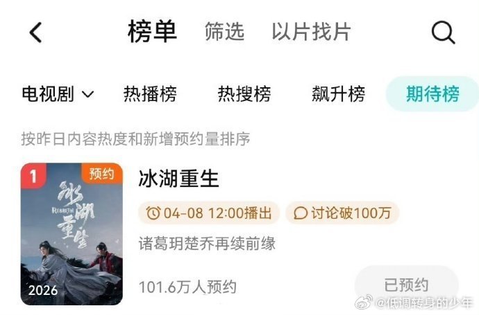 李昀锐冰湖重生李昀锐《冰湖重生》站内期待榜升至第一李昀锐粉丝给大家准备了10万座