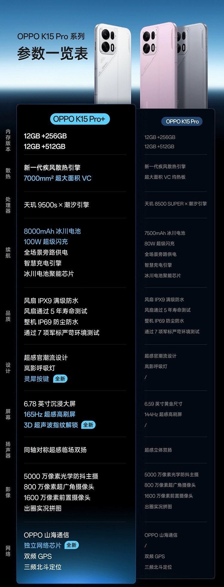 OPPOK15Pro系列配置对比图中都是首销价,过了首销恢复原价[捂
