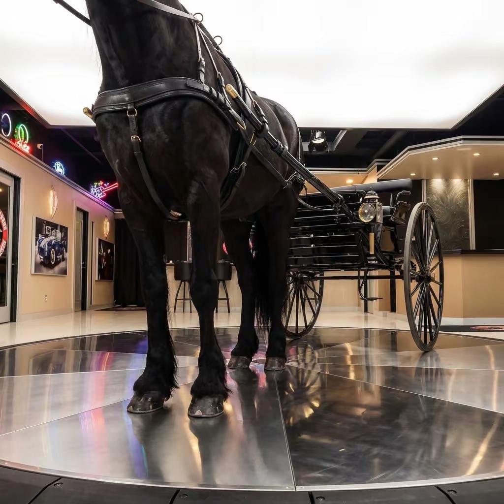 1876 Horse & Carriage Restomod,更像是一件跨越时代的“移动装置艺术”。它以19世纪双轮轻便马车为原型,却由一匹现代弗里斯兰马“Bucky”提供动力输出,约14马力,折合约10千瓦,匹配传统双缰操控系统,实现人与“动力单元”的直接沟通。零排放、全有机“燃料系统”,以及自带巡航与“自动泊车”属性,让这台作品在当代语境下显得格外前卫。整车采用高踏步悬架结构,适应复杂路况,同时搭配飘逸鬃毛、羽饰腿部以及高规格皮质缰具,形成强烈的视觉张力。它既是1876年的日常交通工具,也是今天看来极具仪式感的出行方式。完成干草补给、全套梳理及“水冷系统”维护后,这种原始却真实的动力体验,让人重新思考:在速度与科技之外,出行是否也可以是一种温和而诗意的存在。马车 汽车知识科普 汽车历史 汽车文化分享