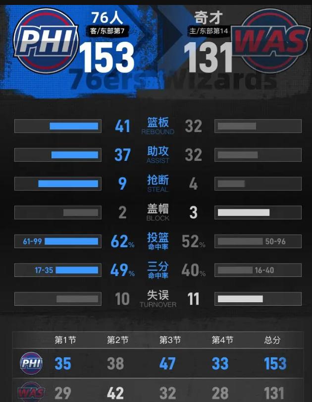 您要是冲着乔治这39分来的,那我劝您直接刷短视频集锦。正儿八经看完整场能保证不打哈欠的,算我输。这场153-131的大胜,说白了就是一场高水平的训练赛——76人没出全力,奇才...他们压根儿就没设防。 开场那会儿,我还真被唬住了。奇才这帮20岁的生瓜蛋子,莱利、卡林顿、武克切维奇,跑得比兔子还快,第二节居然还反超了。可您仔细看,76人那防守松散得跟晨练遛弯儿似的,乔治和马克西纯粹是个人能力硬砸。这就好比成年人陪小孩儿过家家,认真了怕伤了和气,不认真又怕失了面子。半场就赢2分?对于一支要冲季后赛的球队,这牌面儿丢得比输球还难看。 真正的戏码在第三节。76人单节轰了47分,看似天神下凡,实则是奇才那防线纸糊的一样——埃奇库姆随便突,分球跟传自家后院儿似的,刷出23分10助攻。武克切维奇都刷出生涯代表作了,22岁的小伙子拿17分跟玩儿一样。这哪是76人进攻炸裂?这是防守方直接把篮筐给搬您跟前儿了啊。 可话说回来,您别觉得这球就纯粹是垃圾时间。乔治这两年过得憋屈,这回22投15中,六年 hadn't seen this version of himself。34岁的老将,在恩比德缺阵时把球队扛肩上,这种老将的油箱还有油的倔强,看着治愈。再看那帮奇才的孩子,吉尔21分6板6助攻,三分3中3,眼里没输球的沮丧,全是偷师学艺的饥渴。他们知道自己防守烂,知道球队在摆烂,但个人成长这事儿,不糊弄。 所以咱看球的也别光顾着骂奇才防守烂、骂76人没强度。说白了,这就是NBA的生态现实:一边是急需止血稳住第七名的 desperate need,一边是必须交学费积累天赋的必经之路。您看着乔治和埃奇库姆同场刷分,一边是经验丰富的 craftmanship,一边是 raw talent 的野蛮生长,这才是篮球最 honest 的样子。 真懂球的看完这场,不会吹76人多神勇,也不会喷奇才多业余。反而会觉得:看清了竞技体育的残酷分层,却依然能看到个人微光里的执着——这挺治愈的。输赢已定,但有人找回了自信,有人看见了未来。对于纠结能不能直通季后赛的费城来说,这胜利解渴;对于身处暗夜华盛顿的这群孩子来说,这夜晚也没白熬。