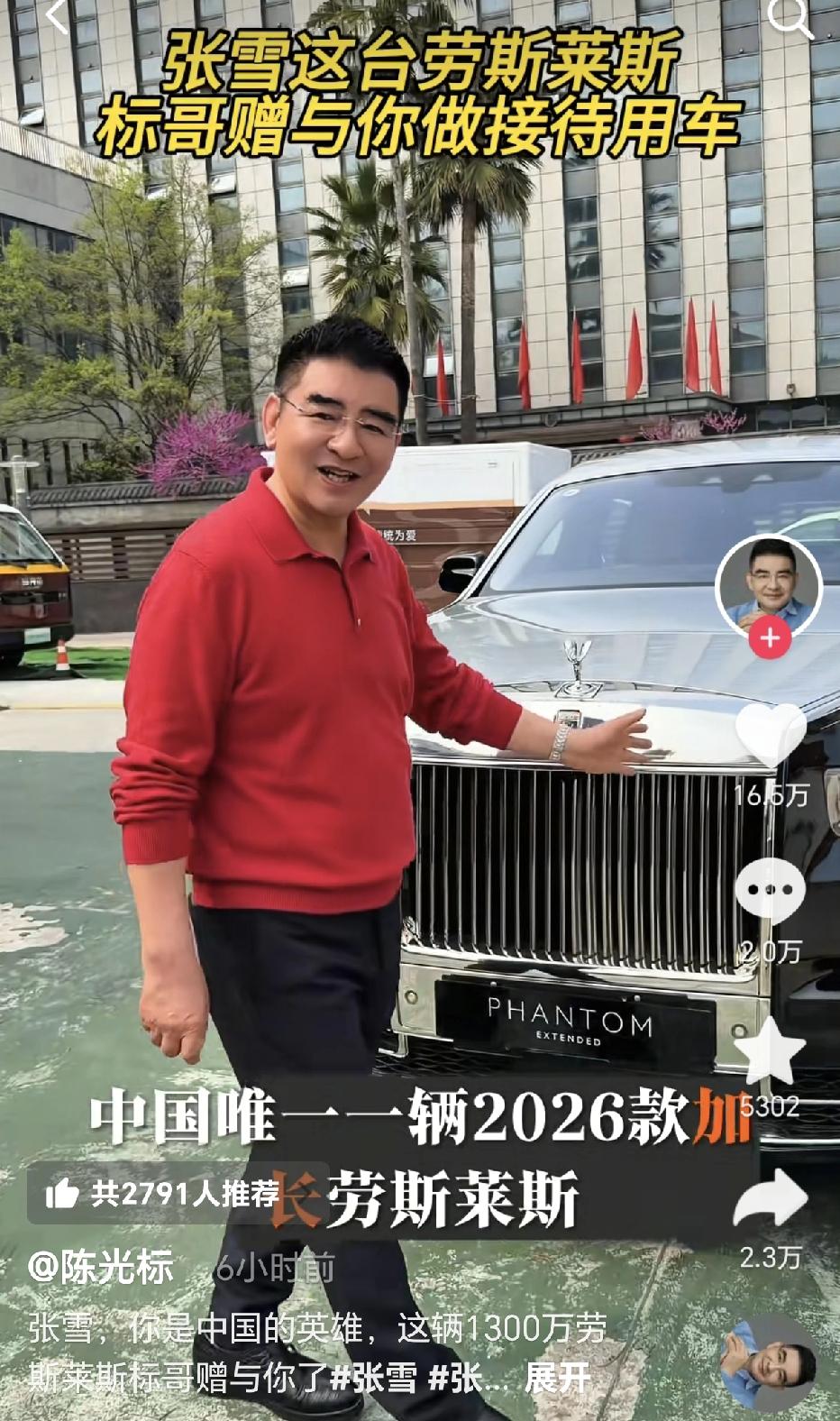张雪回应陈光标要关于送他劳斯莱斯幻影一事,他说: 你说儿豁,那我收了,顺便招募