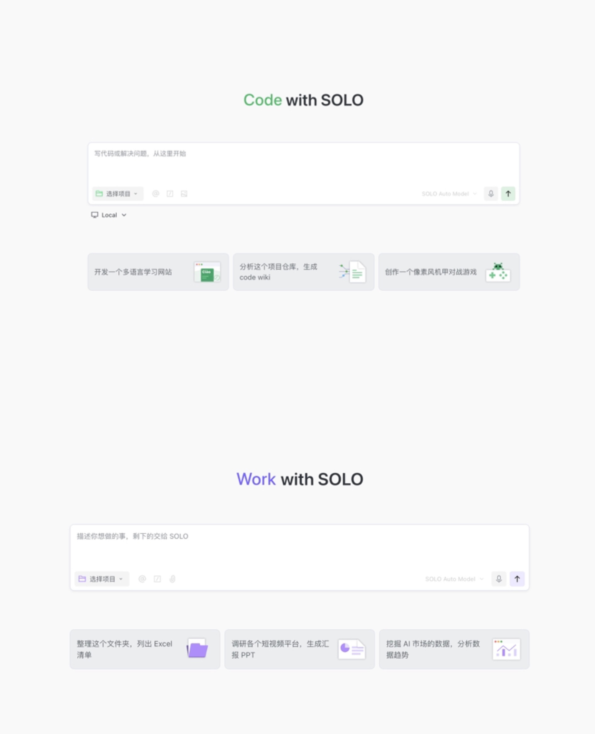 新版本SOLO会自动拆解任务,并调用Skills和工具完成执行,用户只需要提出任务,并对最终结果进行验收。所有项目文件与工具都集中在同一个Workspace中,不需要反复查找或重新上传,就能管理和调用,整个流程更顺畅。