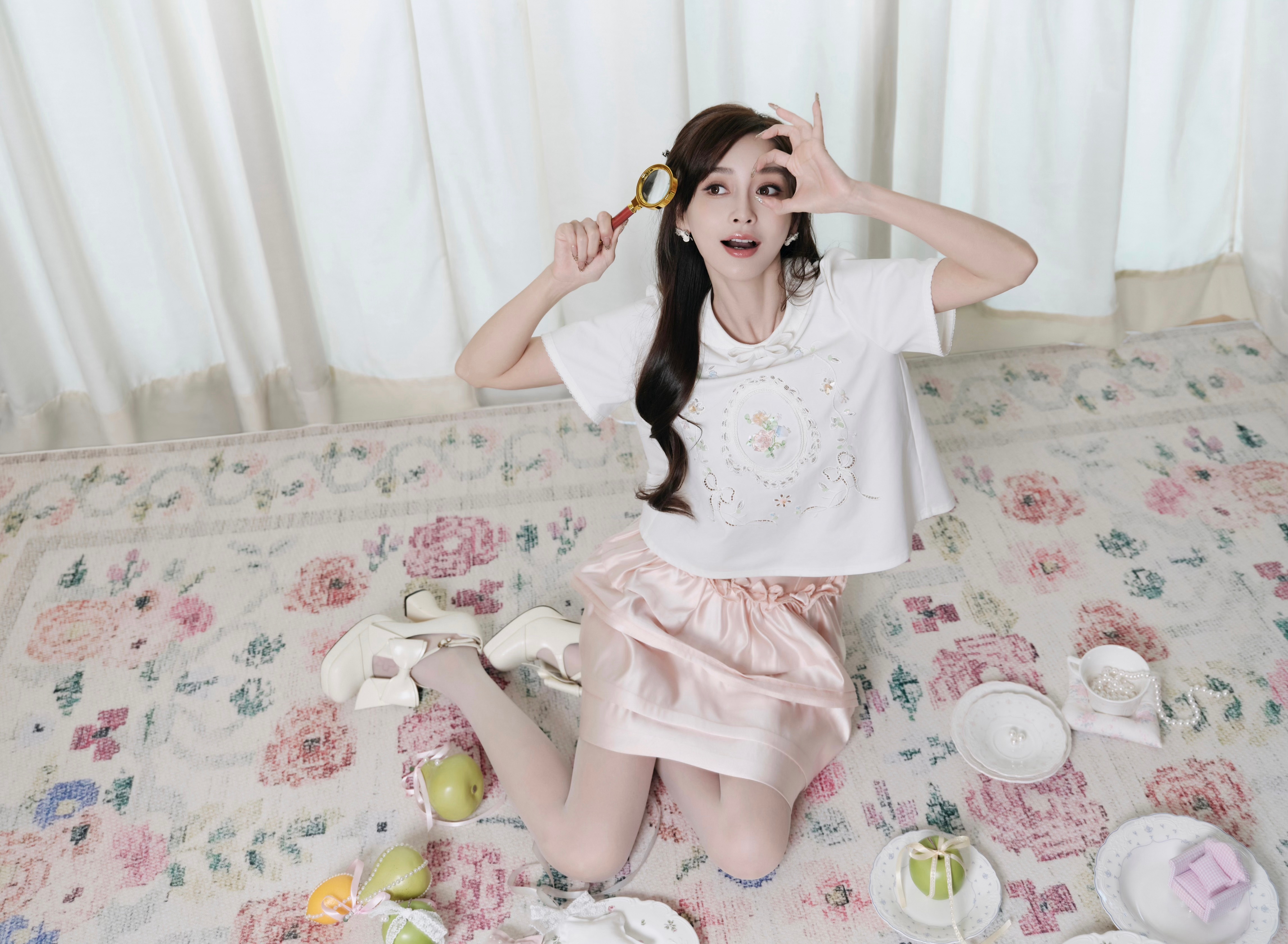 Angelababy 🌸 春夏粉裙丝袜搭配
