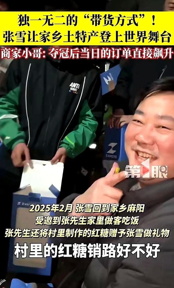 这才是真助农,不搞直播不刷数据! 湖南麻阳的张雪,春节回家吃饭,听说村里红糖卖不出去,老人干着急。她二话没说,直接承诺把“麻阳古法红糖”这六个字,免费贴到自己的赛车上。 一个月后,葡萄牙世界摩托车锦标赛,法国车手骑着她的赛车,车头贴着红糖标识,连拿两场冠军!五星红旗升起,全球直播镜头好几次扫过。 结果你猜怎么着?村里红糖瞬间爆单,网店一天卖了近300单,积压的库存全卖光了。村民录视频感谢:“张雪,谢谢你!” 这比任何口号都管用,这糖甜到心里了。