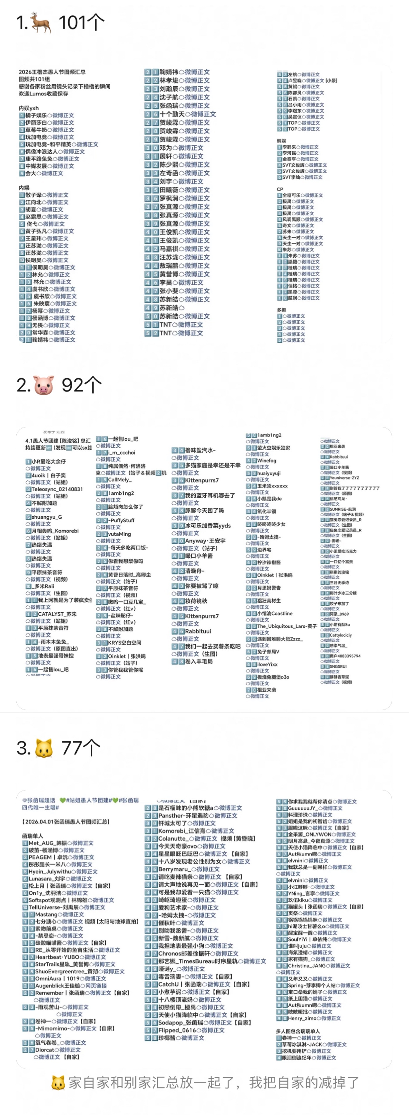 四代愚人节站姐团建拉表统计王橹杰101 陈浚铭92 张函瑞77 张桂源32 杨博文20 左奇函15陈奕恒14 陈思罕13