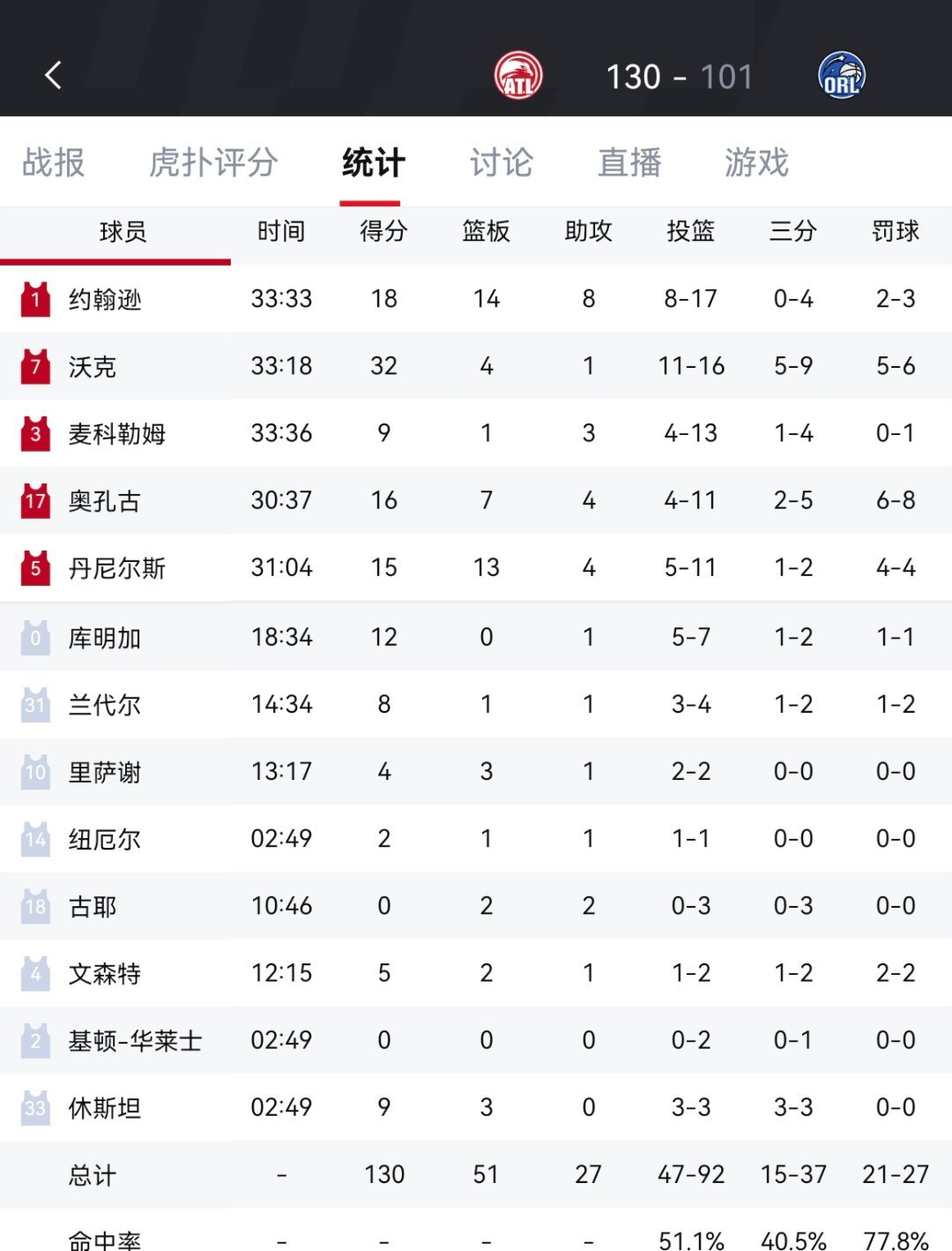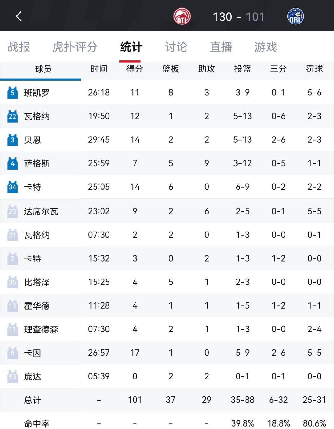 老鹰29分大胜魔术!亚历山大-沃克16中11砍下32分