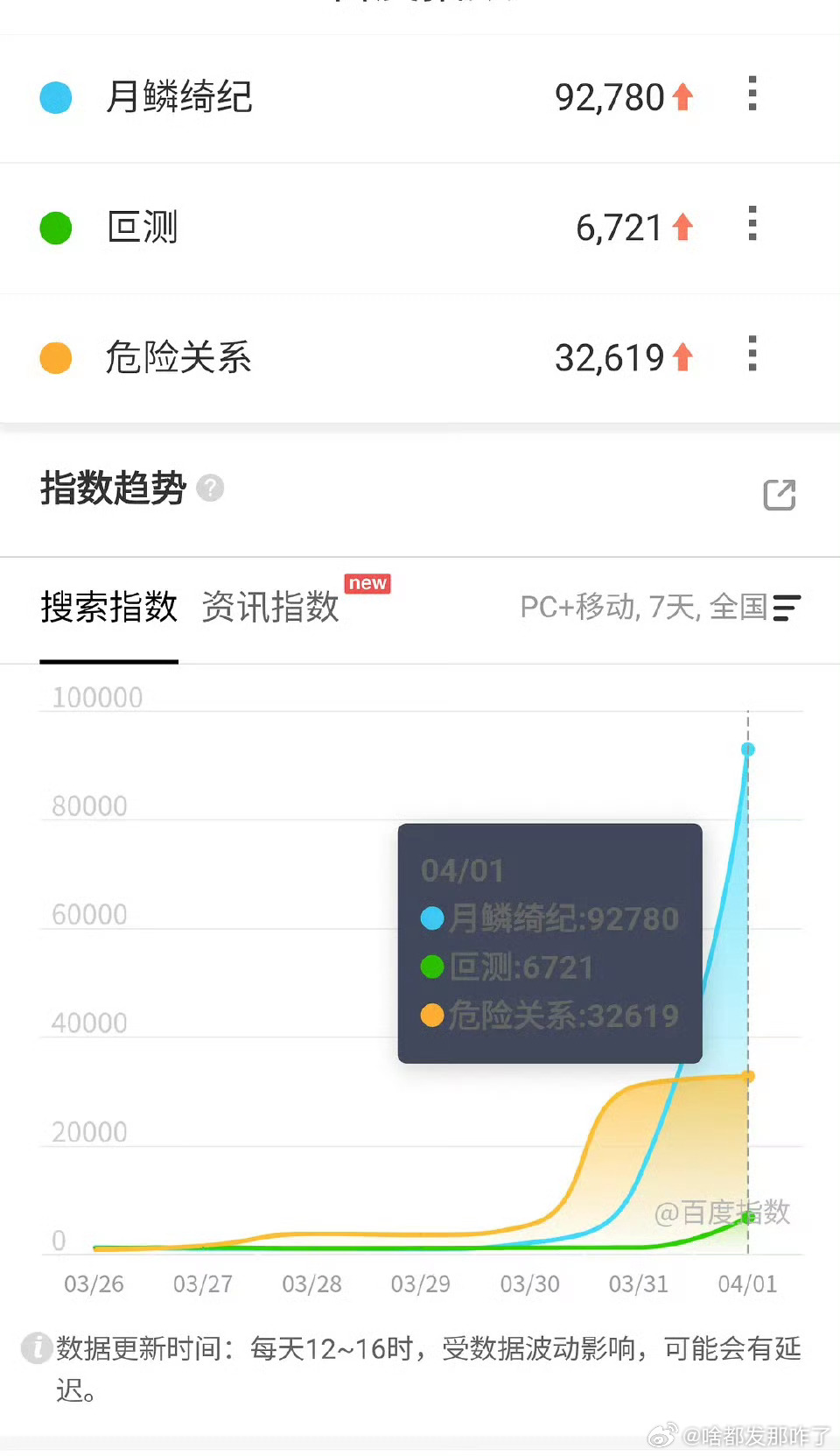 三部在播剧昨日百指,有没有发酵的迹象鞠婧祎、陈都灵月鳞绮纪首日9.2w迪丽热巴、