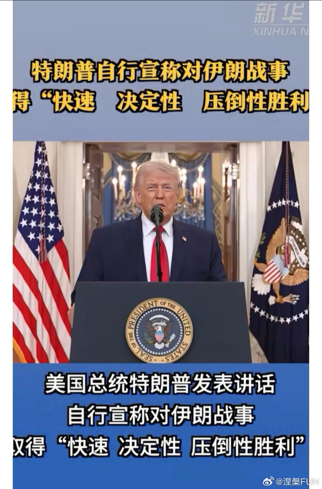 特朗普就伊朗问题发表讲话 意思就是我的部队到位了,可以全面开打了!估计原油价格还
