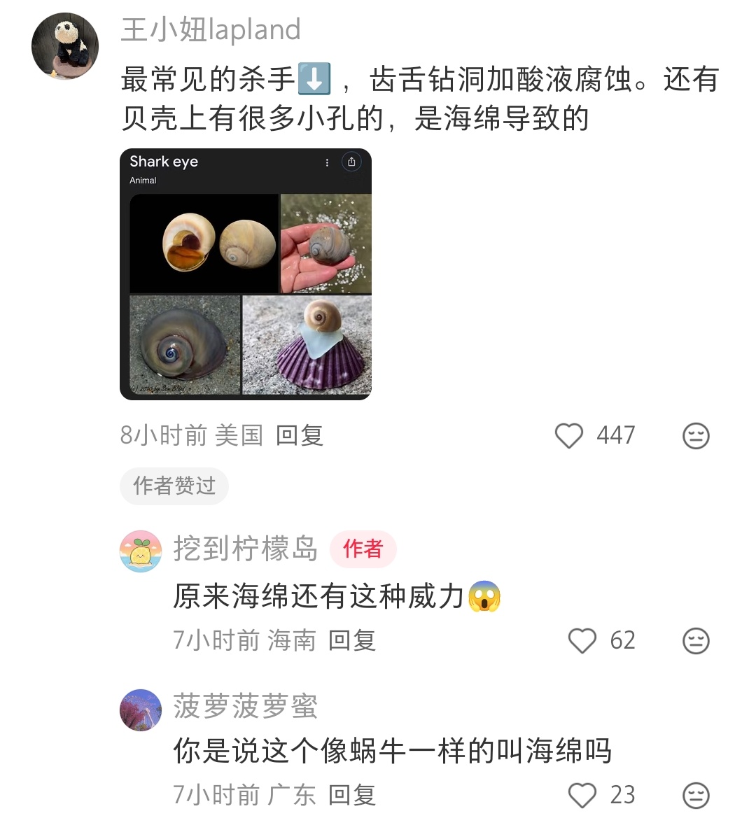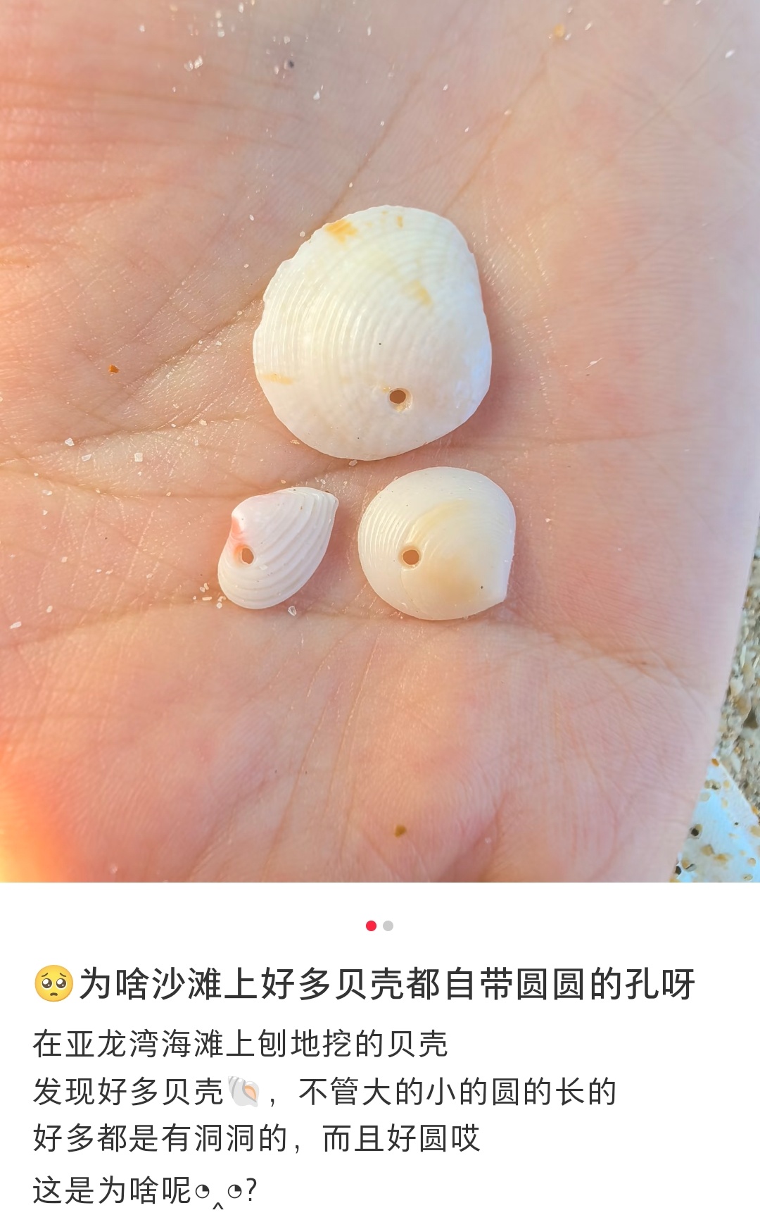 海边捡的贝壳上有洞洞,原来是被吃它们的动物咬开吸走了