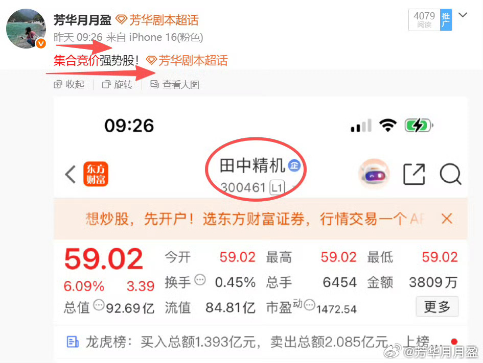 芳华最近V+专属内容反复多次强调当前行情处于轻指数重个股阶段,重在个股机会,个股机会!那么操作上当然要挑选强势股操作啦,不管是芳华上周三开盘前提示的$光库科技 sz300620$ 还是本周一开盘前提示的$田中精机 sz300461$ ,完全不顾大盘弱势连续大阳线,光库更是突破历史新高,难道不值得夸赞嘛?没跟上节奏的童鞋赶紧私信芳华666!芳华剧本