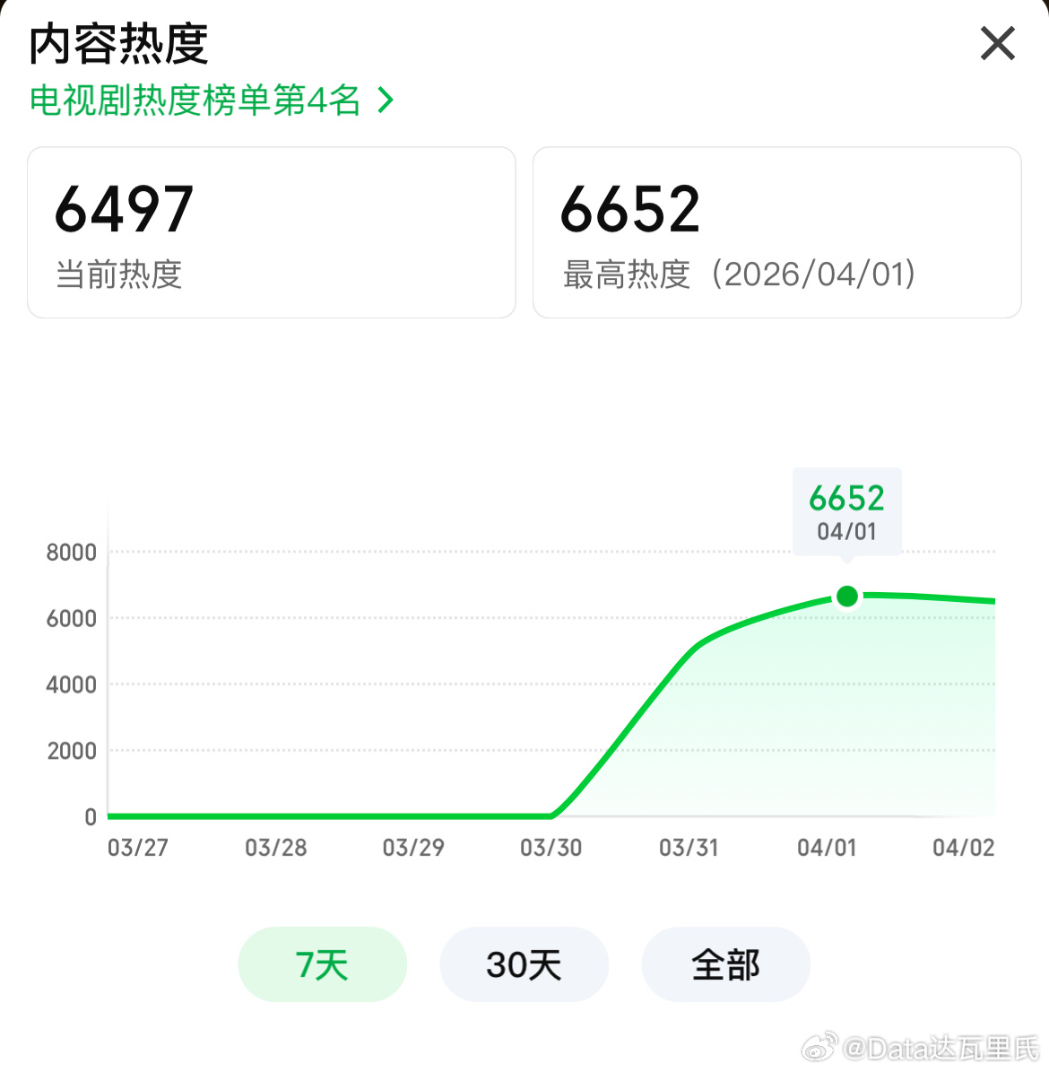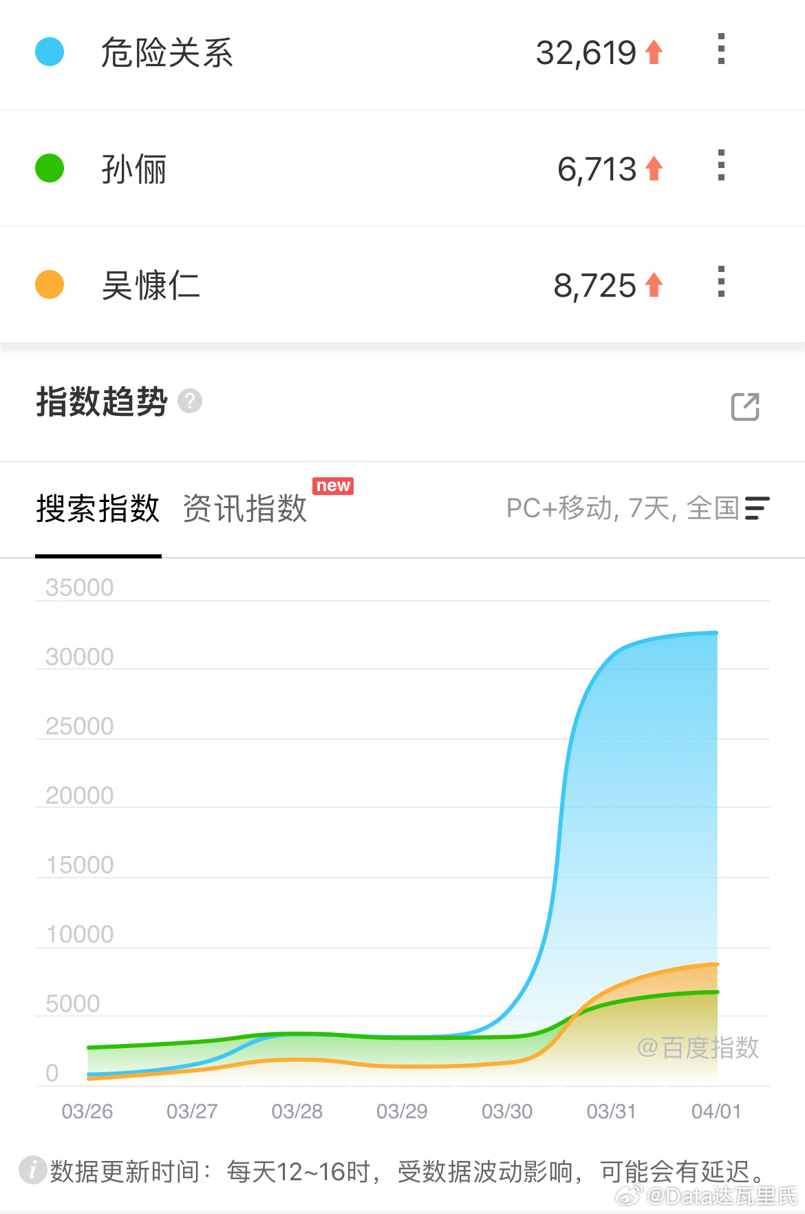 孙俪、吴慷仁危险关系 次日爱奇艺站内热度值6649,较前日+1466云合/酷云次日播放量700万上下