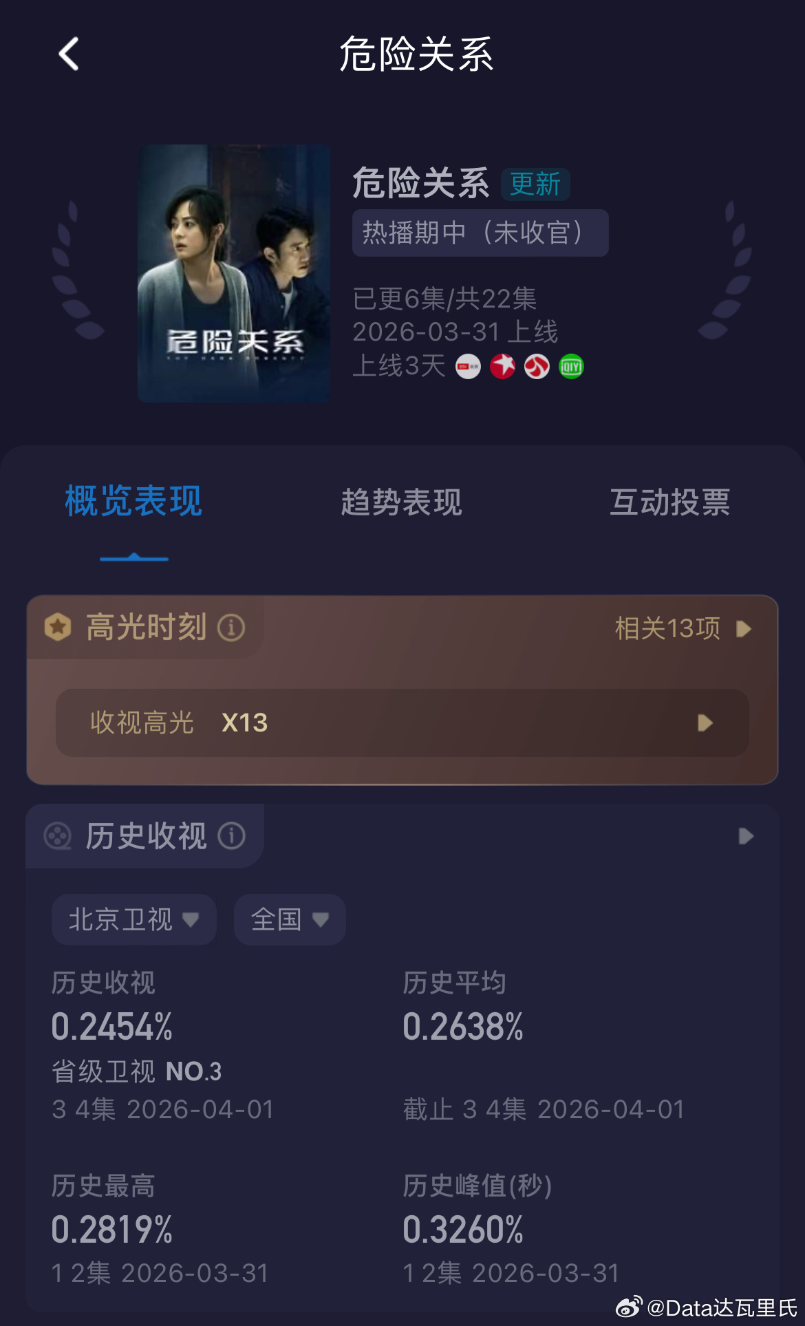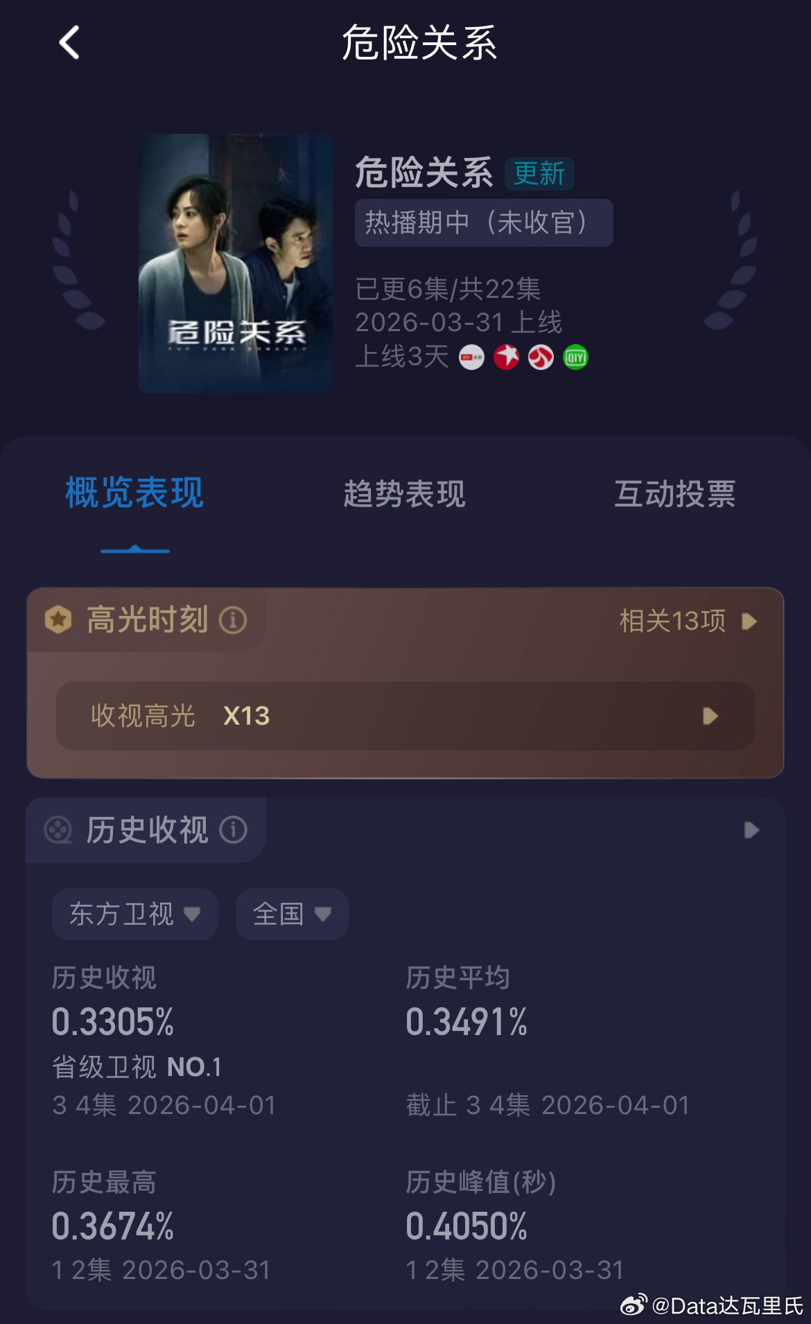 危险关系收视率 次日酷云收视率东方卫视0.3305%,较首日降了北京卫视0.2454%,较首日降了江苏卫视0.1708%,较首日降了