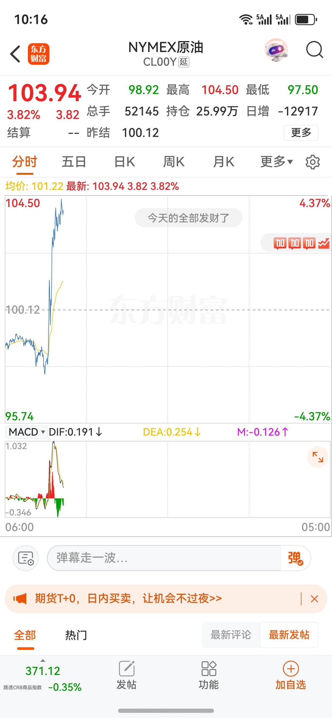 懂王一个讲话,全球油价又直线上涨,股市再掉头向下 ,A股早盘三大股指又绿了。 懂王几个意思:一是赢麻了 ,快速、决定性、压倒性的胜利;二是还要打,未来两到三周内,进行极其猛烈的打击;三是其他国家要石油,要么从美国买,要么到霍尔木兹海峡抢。 市场原本预期美伊战事趋缓,有可能要结束了,油价跌股市涨,这个讲话又要猛烈打击,市场预期落空了,油价、股市再度巨震。中东战争不止,原油供应难稳,许多国家油气供应遇到难题,有些贫穷国家情况正变得绝望。 其实中东战争对我国影响有限,更多的是情绪面上,量化等做空资金利用利空打压赚钱。但战争终将过去,股市会回归到常态,就地卧倒也许是好的选择,一旦战事结束,市场会强烈反弹,以免低位割肉高位再回补。