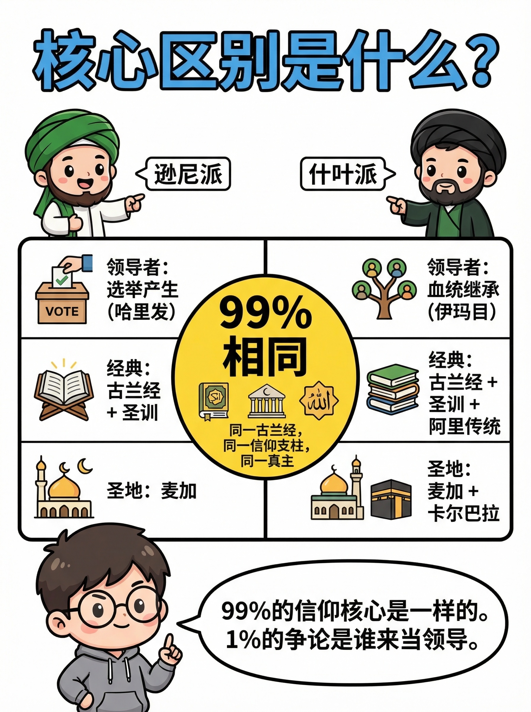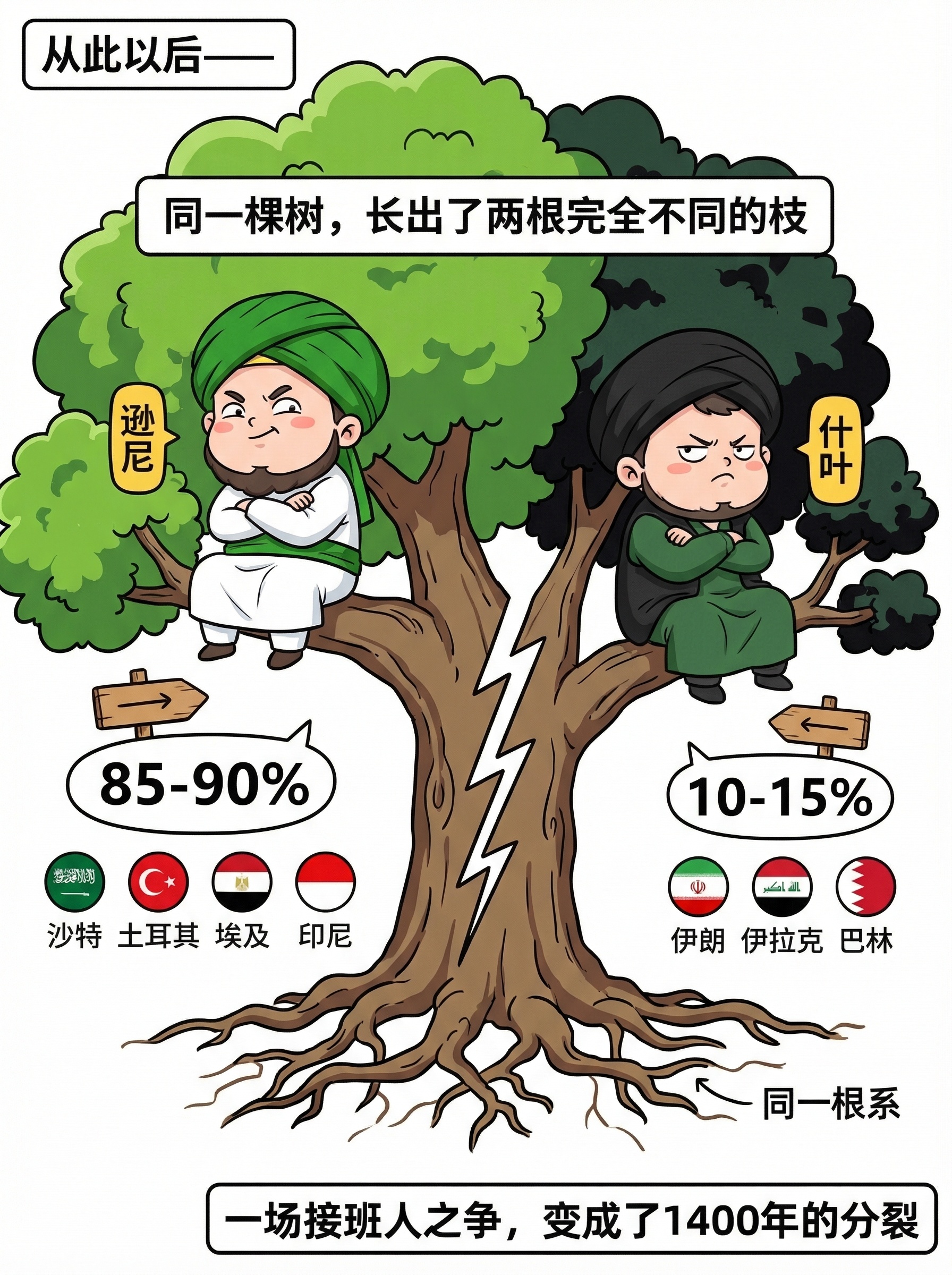 什叶派和逊尼派:一口气看懂1400年的恩怨同一个真主同一本古兰经同一个先知但他们打了1400多年为什么?