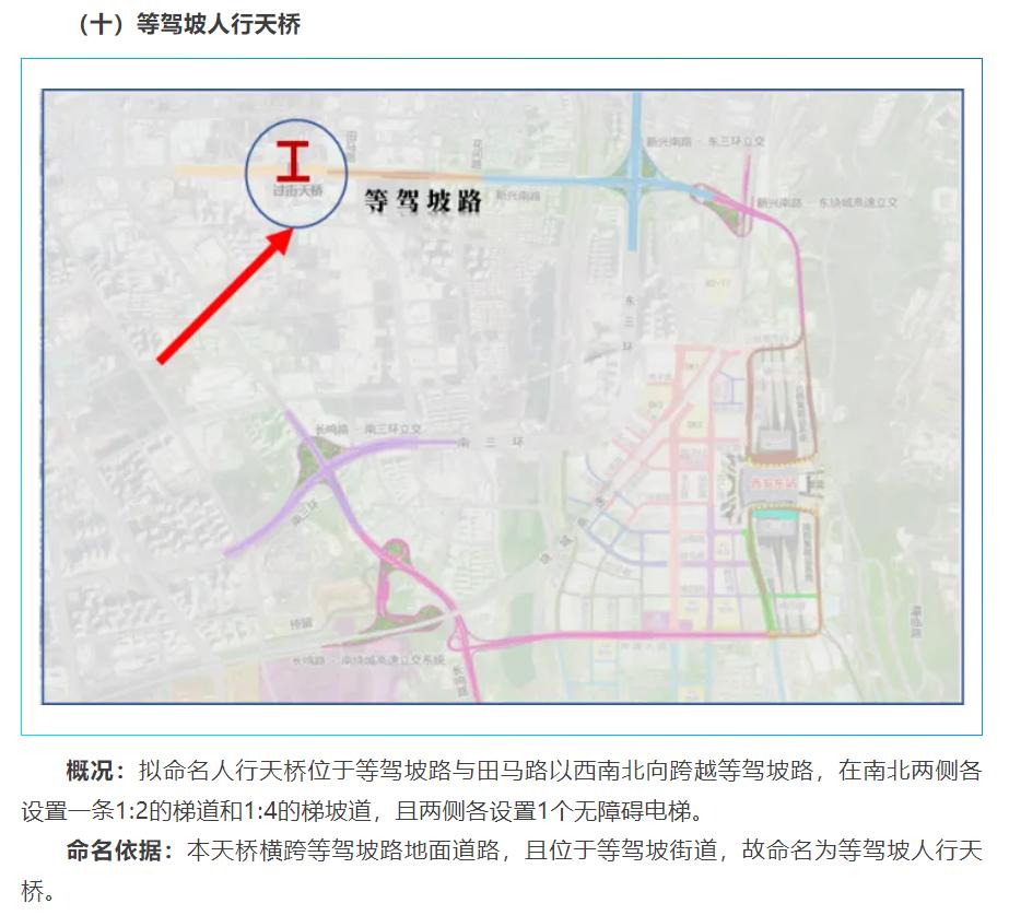西安东站片区10座新建桥梁命名方案公示,涉及等驾坡路高架、东站北/南环高架、长鸣路高架、三殿立交、马腾空立交等,均依据高架所在地面道路或立交所处既有桥梁命名。