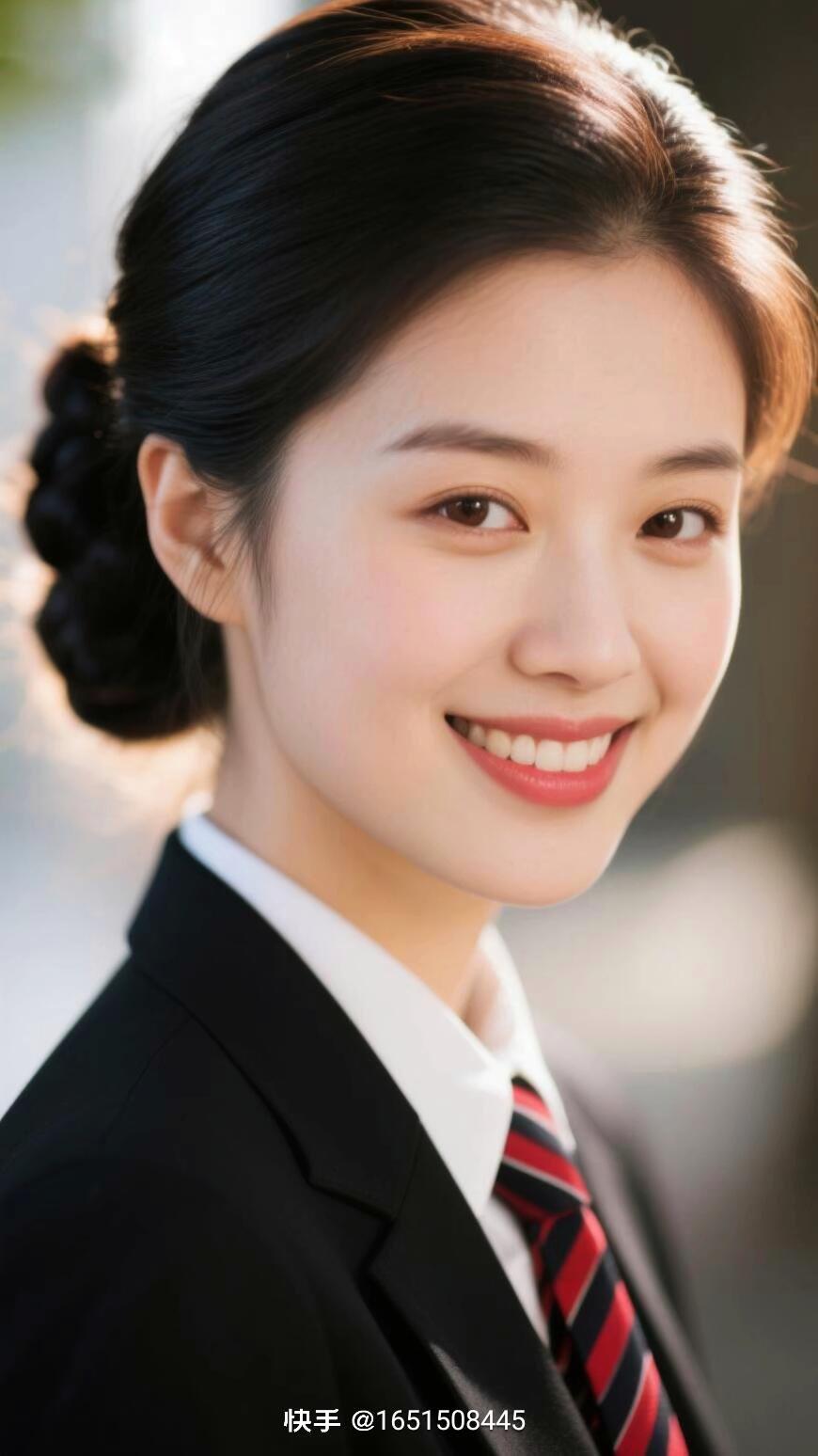 职场萌妹,甜美微笑,红领带点缀,元气满满的一天!😊💼✨