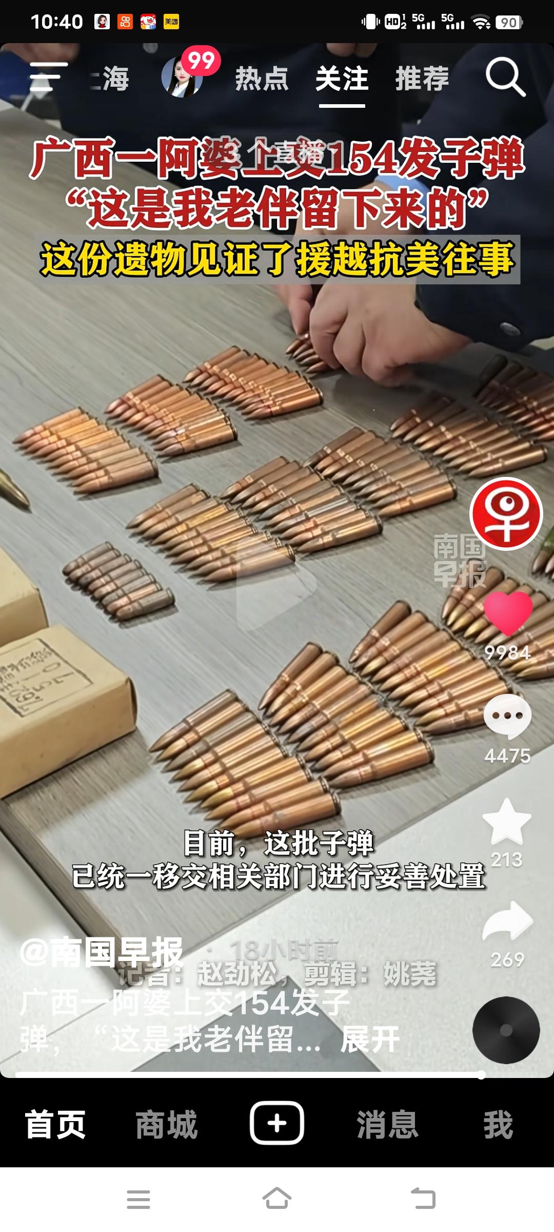广西的禤女士和女儿上交154发子弹的事迹,着实令人动容。这些子弹是她老伴援越抗美那段峥嵘岁月的有力见证。援越抗美是一场满含艰辛与热血的战争,无数战士为了和平奋勇拼杀。她的老伴带着这些子弹历经枪林弹雨,它们承载着战争的记忆。 然而,她并未私藏这些子弹,而是带着女儿将其上交。这一行为不仅展现了她的法律意识,更彰显出她对那段历史的敬重。这些子弹宛如时光的使者,让我们能更真切地体会到先辈们的奉献与牺牲,也提醒着我们要珍惜这来之不易的和平。 感觉她立了大功,万一局势有变,这些子弹说不定还能派上用场。必须给她一个大大的赞! 广西籍烈士宝凤 191子弹