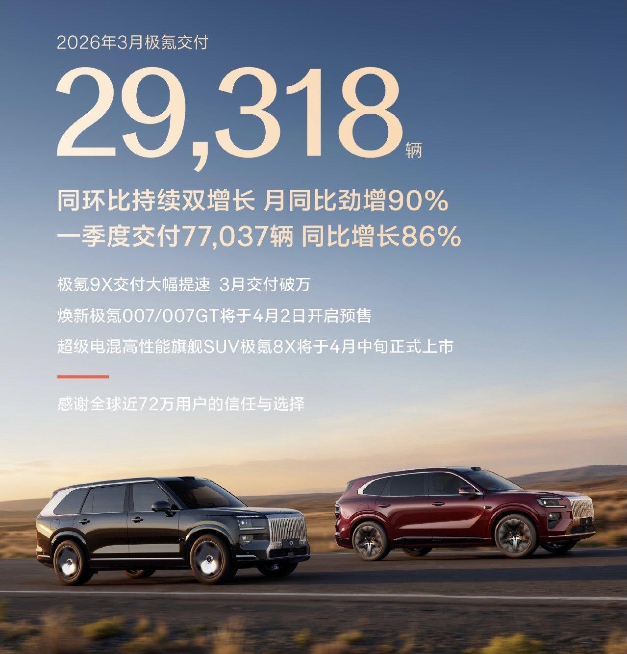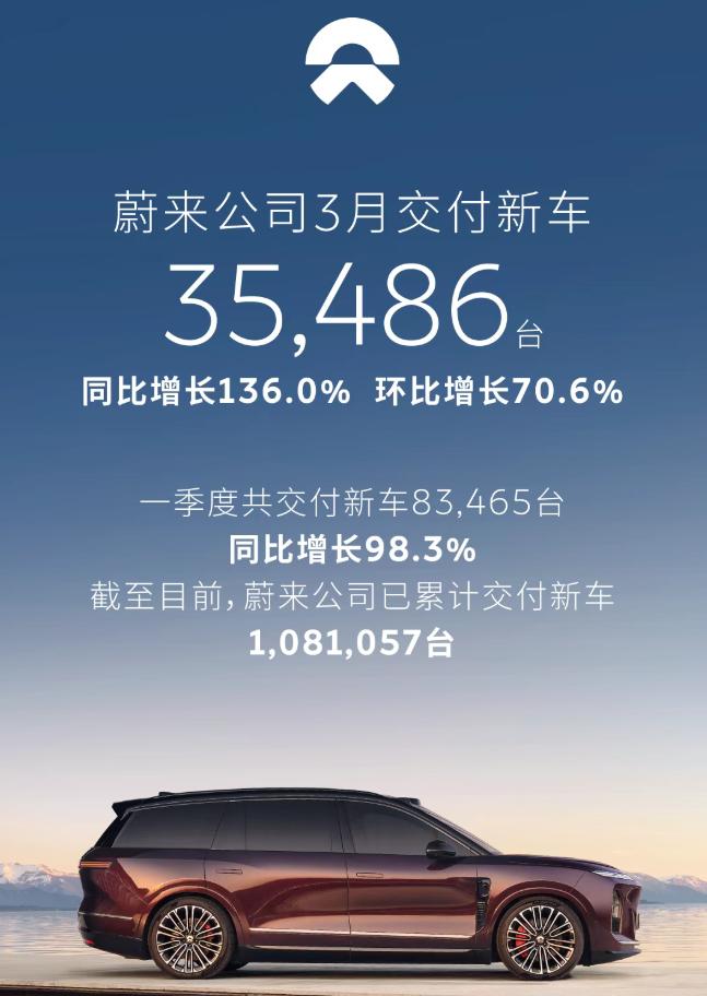 3月车圈“成绩单”出来了 挑几个重点讲一下 比亚迪重回销冠,月销30万辆,亮点海外再度超10万 新势力第一仍是零跑,月交付5万+,一手性价比玩得炉火纯青 理想好起来了,月交付4.1万,排名新势力第二 理想i6成为新的销量担当,月交付超2.4万 3月蔚来公司共计交付3.5万,蔚来品牌2.2万,同比大涨120%,全新ES8依然是主力 小鹏这个月表现不太好,只有2.7万台,可能是因为M03即将焕新,拖了后腿 极氪再次让人意外,月交付2.9万,同比大涨90%,其中9X月交付破万,成绩喜人 包含问界在内的赛力斯月销量2.2万台,问界大概2万台,市场表现乏力,静待M6爆发 岚图交付1.5万,国家队新品牌能有这个成绩,也值得表扬 小米月交付超2万,官方披露数据又是概数,2.9万还是2万出头?你就猜吧