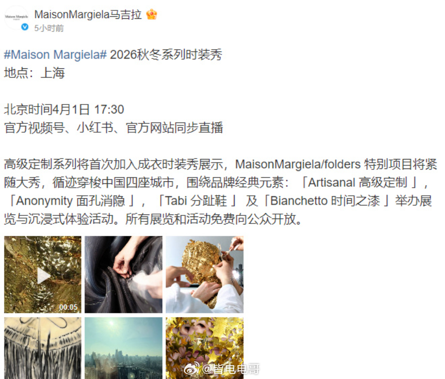 Margiela 2026 秋冬大秀压轴登陆上海时装周(昨晚),秀前直接官宣和小米的联名企划