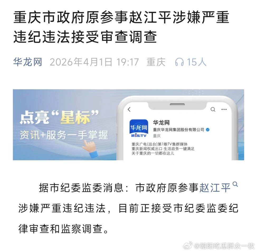 重庆市政府原参事赵江平涉嫌严重违纪违法接受审查调查。