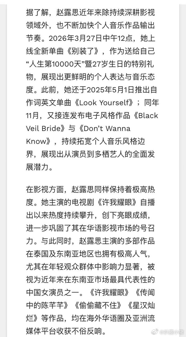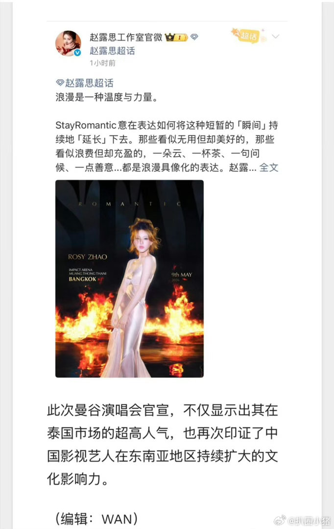 赵露思要在泰国举办演唱会登泰媒头版头条!