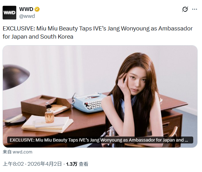 张元英成为Miu Miu Beauty日本、韩国品牌大使