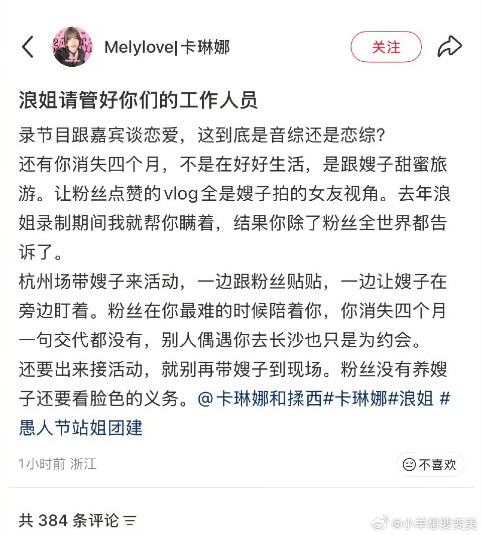 卡琳娜站姐喊话浪姐管好工作人员这也是愚人节play的一环吗