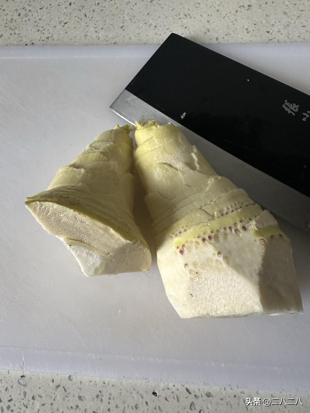 下班回家,在楼下遇见一楼邻居李姐正在剥笋子。 我赞了一句:“笋子好鲜嫩哦,哪里挖的?” 李姐说:“昨天和姐妹们一起去花山挖的,挖了一大袋,拿两棵给你尝尝?” “不要,你费劲把拉地去挖的,自己留着吃,吃不完的焯水晒成干笋,烧肉很好吃。” 李姐却不管,立马拿了一个袋子给我装了两个,硬塞到我手里。 恭敬不如从命,晚上就来个鲜笋肉片吧,尝尝春鲜。 回到家,把笋衣一层层慢慢地剥掉。 嫰嫰的乳白色的笋肉透着微黄,泛着竹子的清香。 剥好的笋子切成薄片,放在开水中焯一下水,捞起来放在凉水中浸泡半小时,去除了苦涩味,分装成2份放在冰箱里随吃随拿。 一句随意你的问话,邻居就赠送了两根竹笋。 这真是好邻居吧