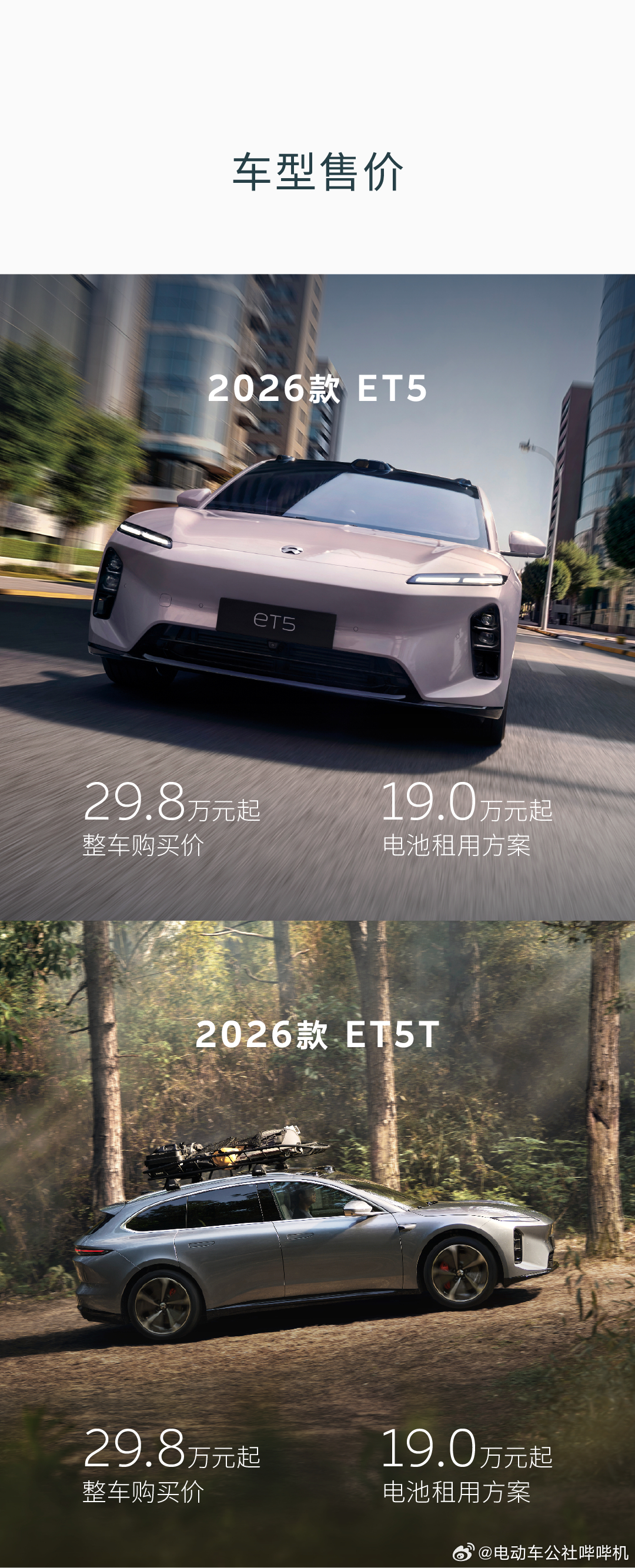 新款蔚来ET5/ET5T售价29.8万起,租电池方案售价19万起。同时推出特别版,售价31万起,租电池方案20.2万起。蔚来汽场全开