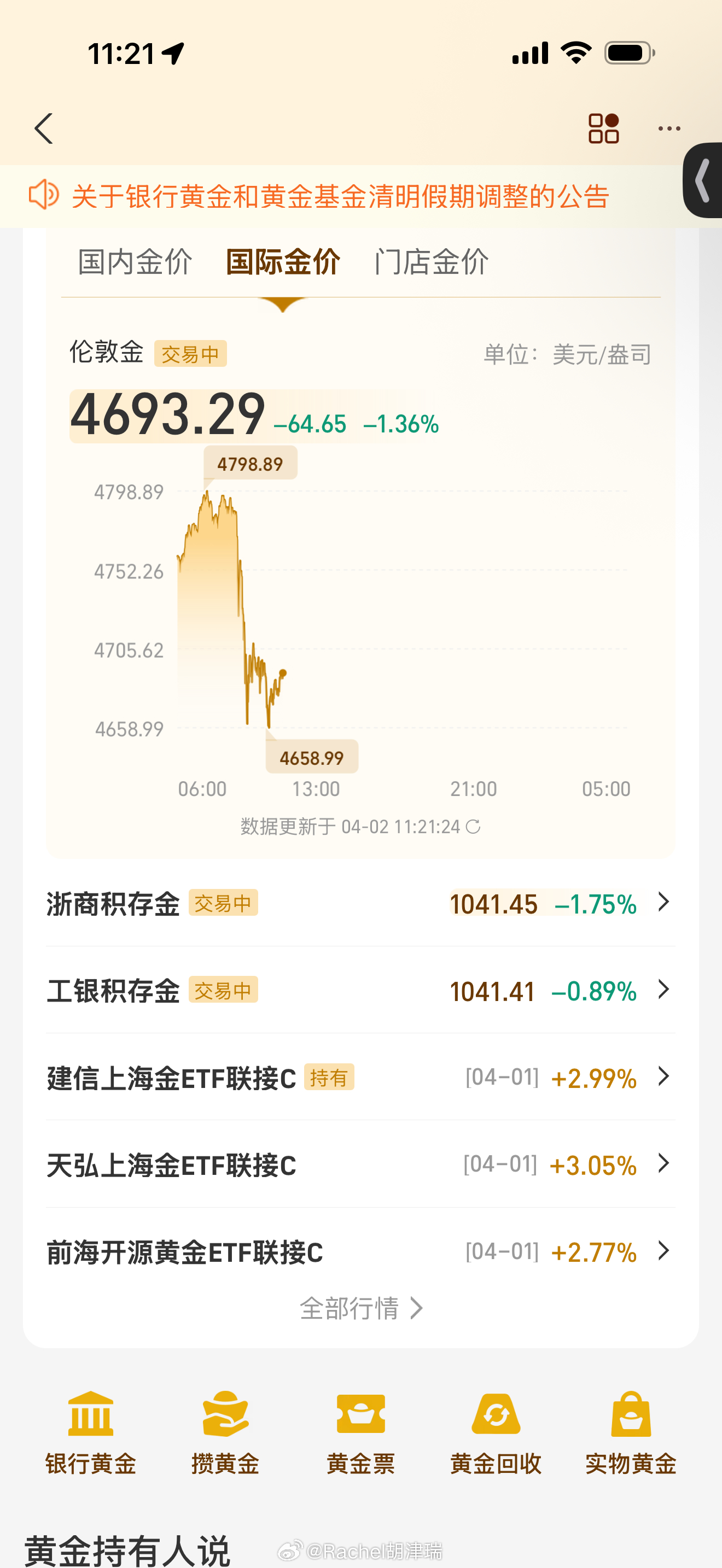 金价冲到1021,我直接清仓了!3月31日金价一破千,我立马把手里的黄金全
