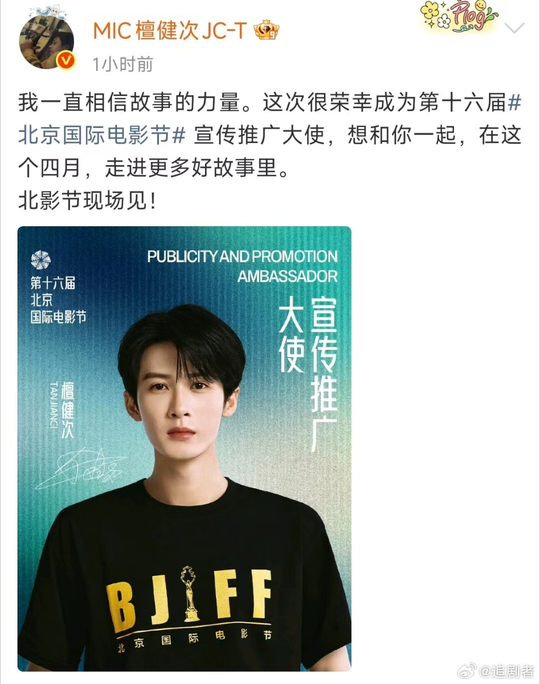 檀健次说相信故事的力量檀健次北影节宣传推广大使心有热爱,眼有星光,恭喜檀健次,期