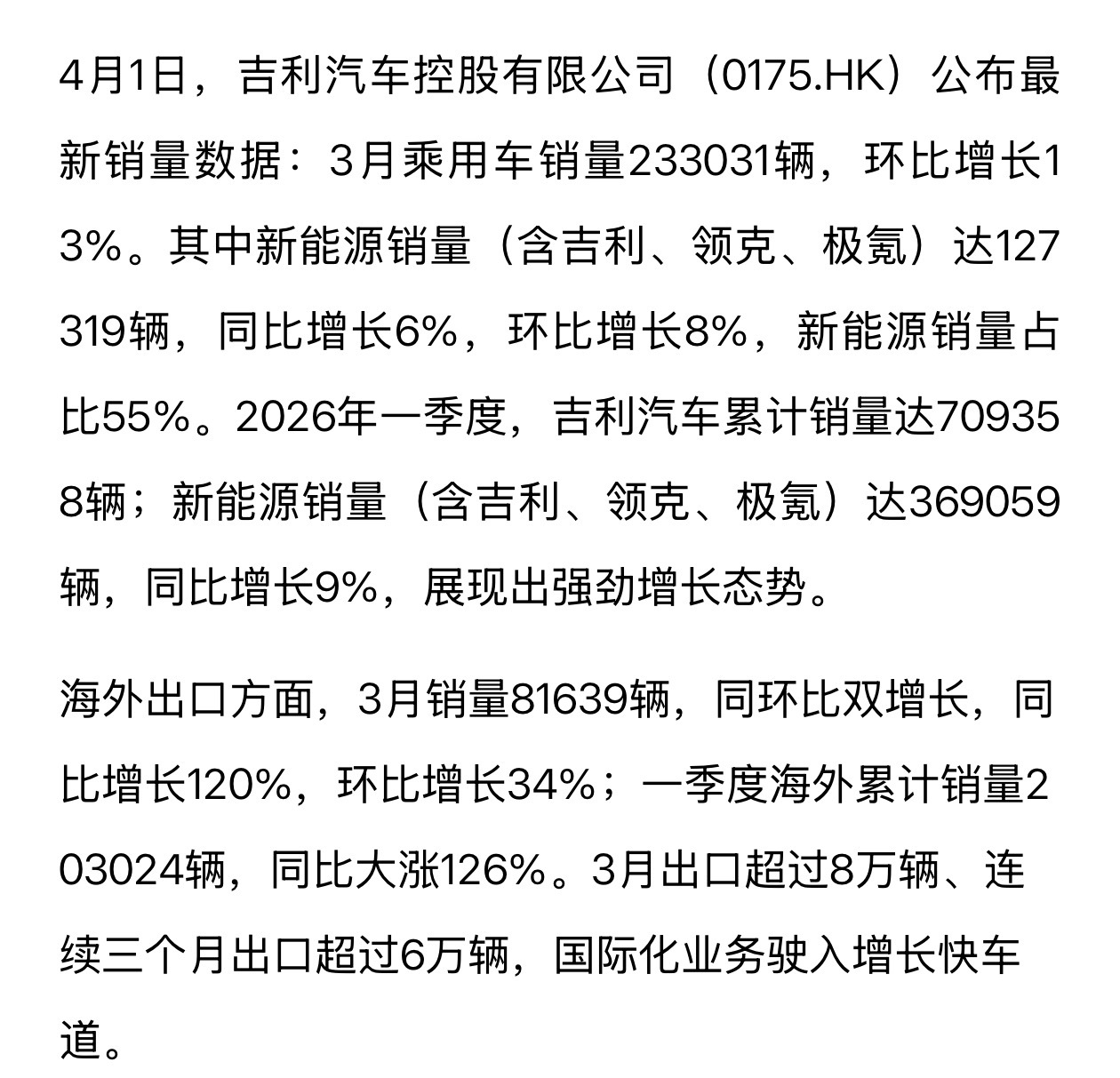 股价大涨,肯定是跟销量有关。一季度销量超70.9万辆,登顶中国品牌销量冠军。