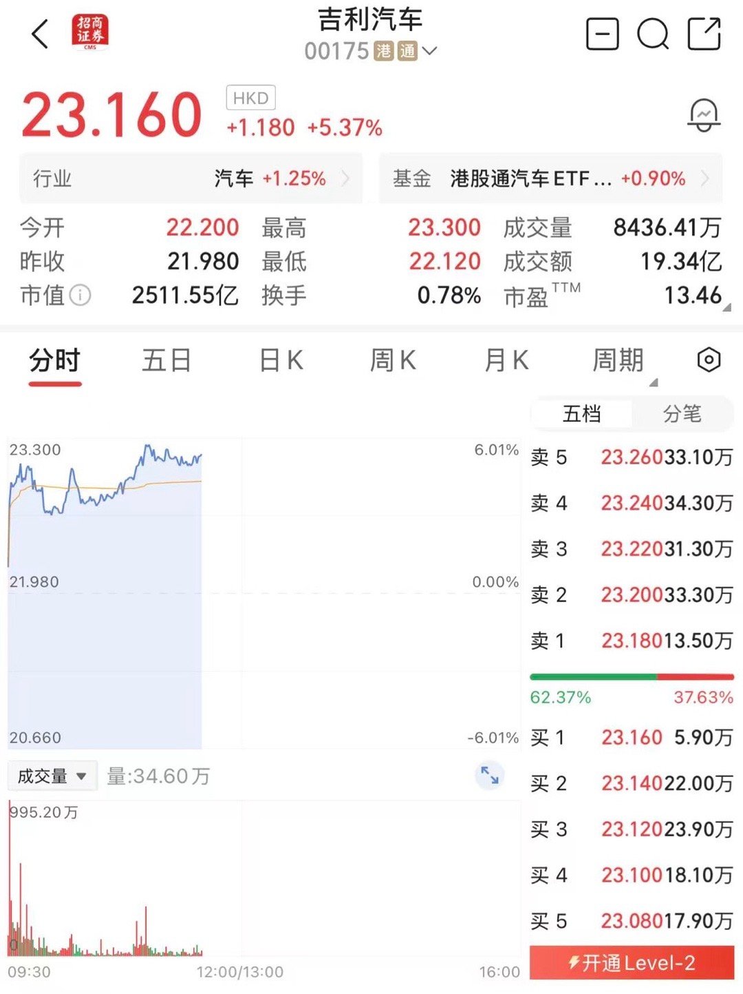 吉利大涨,又给国产长脸了!近一个月股价大涨近50%,4月2日盘中涨超5%,报23.16港元,创下四年新高,领跑港股汽车板块!一季度更是狂卖超70.9万辆,直接登顶中国品牌销量冠军!极氪、领克高端线稳扎稳打,3月海外销量直接翻倍,4月还有新车密集上市,产品力拉满!这波吉利是销量、股价双爆发,我想说国产车企是真的彻底站起来了!