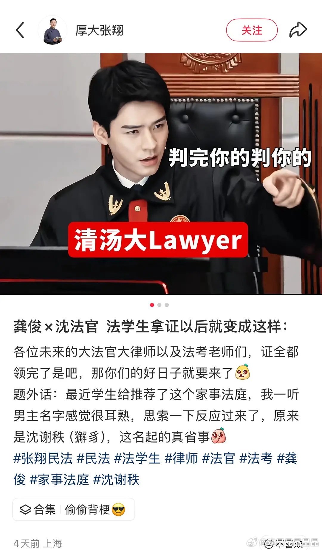 法考名师厚大张翔向他的学生推荐《家事法庭》,这剧在专业人士那里挺受认可的。龚俊家事法庭