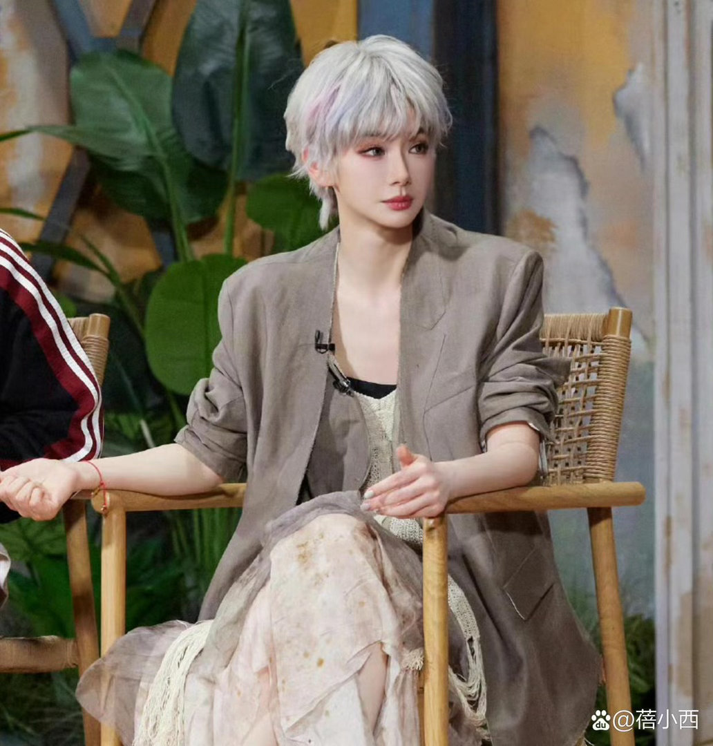 戚薇白发造型美我一大跳戚薇白色短发造型没点开节目之前完全想不到戚薇会尝试白色短发