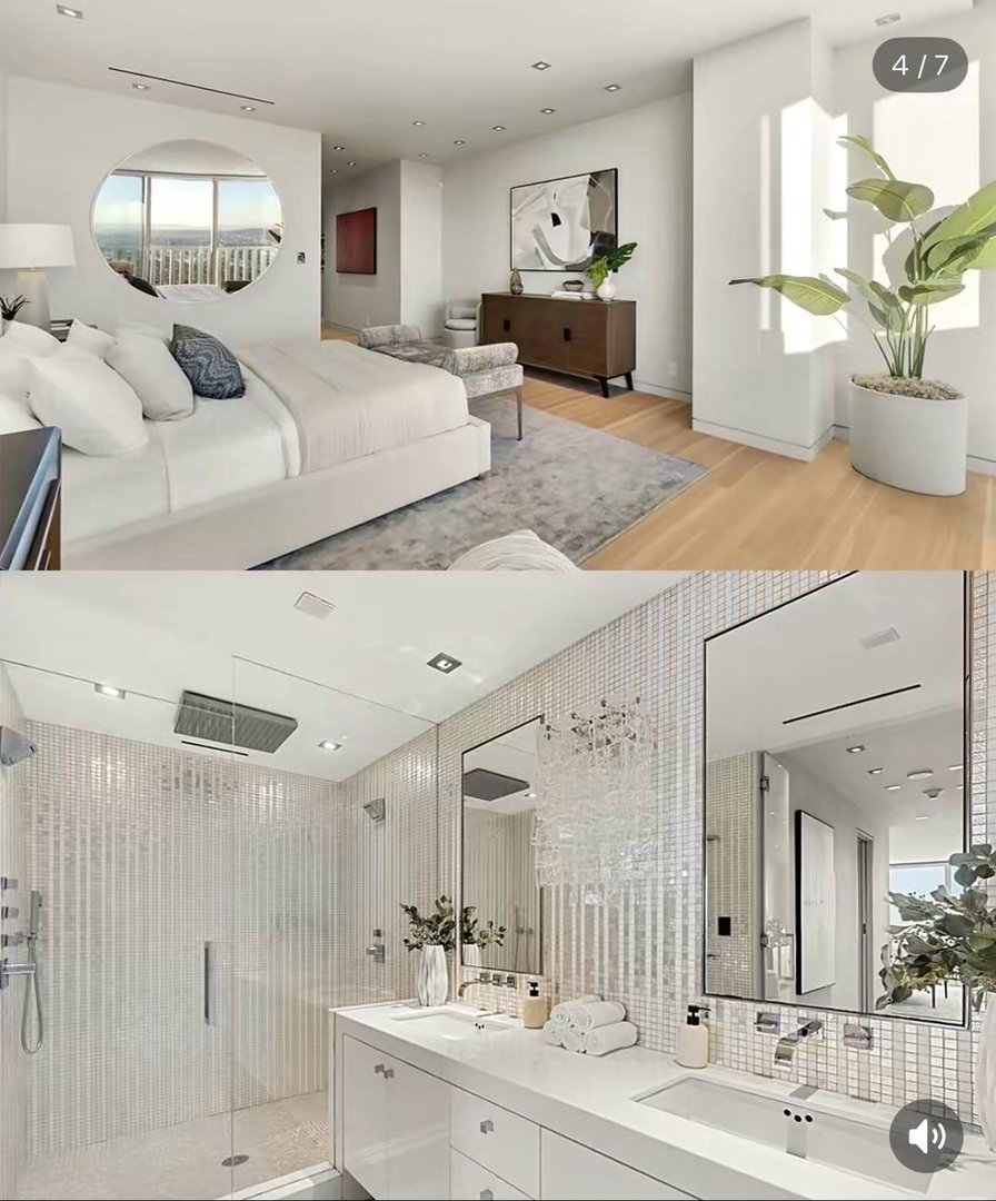 这套约1800平方英尺的住宅刚完成翻新,仅设有一间卧室,并配备落地窗,可无遮挡地眺望从洛杉矶市中心天际线一直延伸至太平洋的景观。大楼设施包括全天候安保与代客泊车服务、室外泳池及户外厨房,以及配有蒸汽房和干蒸桑拿的健身中心。
