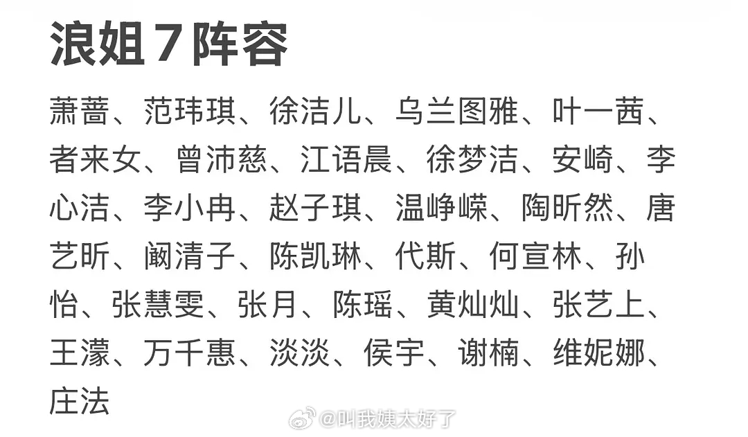 浪姐今晚初舞台直播将近一百个明星艺人,堪比微博之夜啊😮竟然有33个姐姐+34个