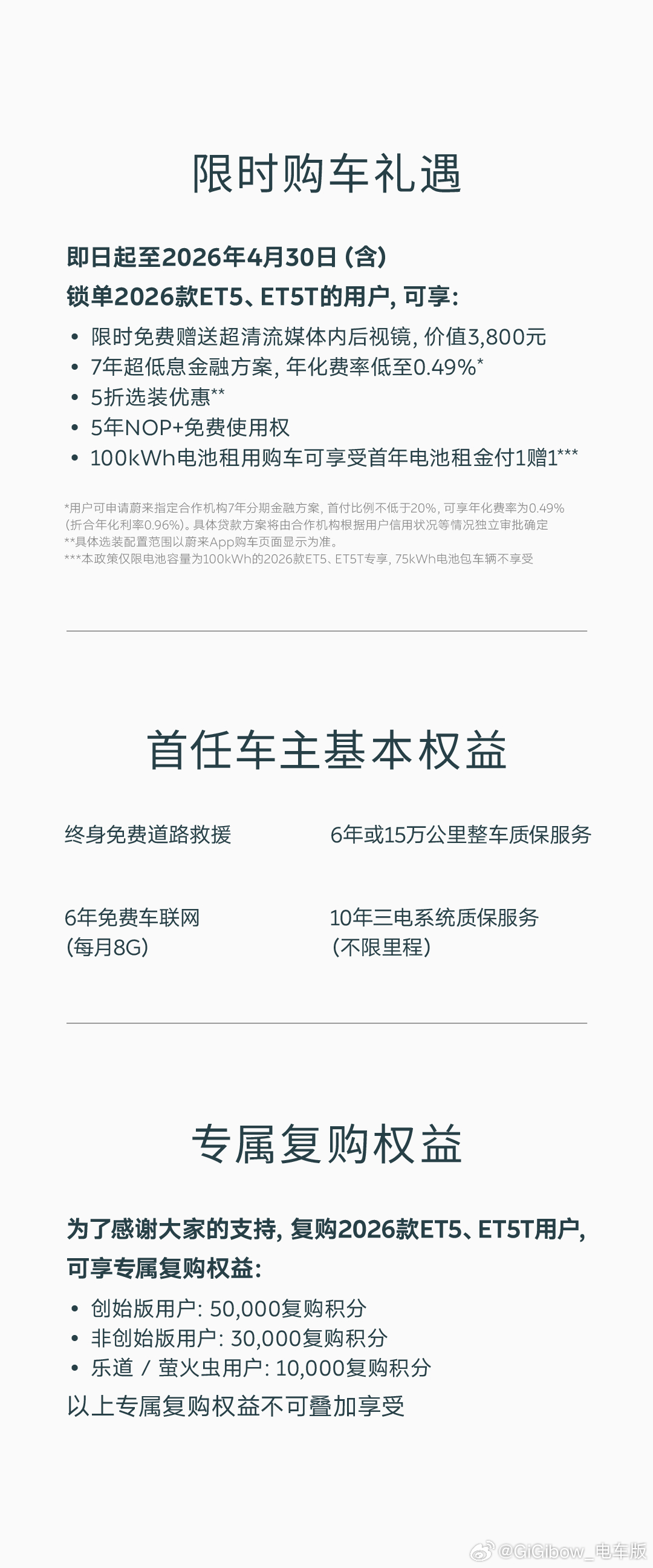 2026款蔚来ET5、ET5T小改款来了整车售价29.8万元起,BaaS后售价19万元起,保持不变,这次有一个特别有意思的:自然奇境版31万元起,BaaS后售价20.2万元起。