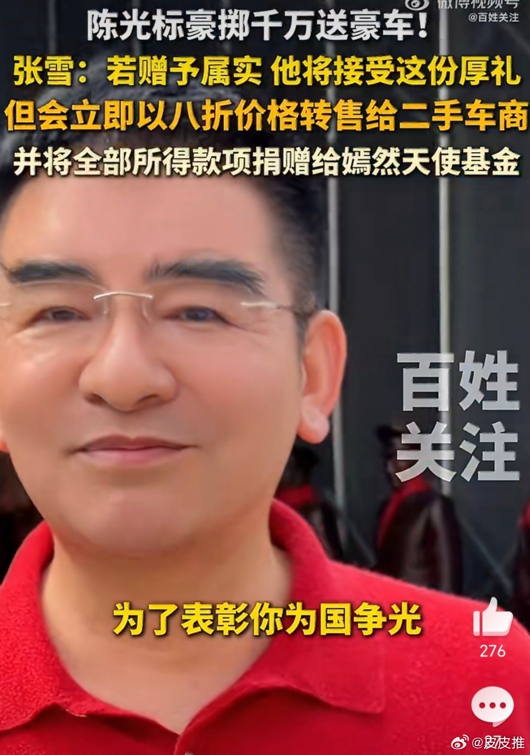 不过网友对此评论:陈光标是真爱蹭流量,虽然他作秀是真作秀,但是送也是真送。科技先锋官