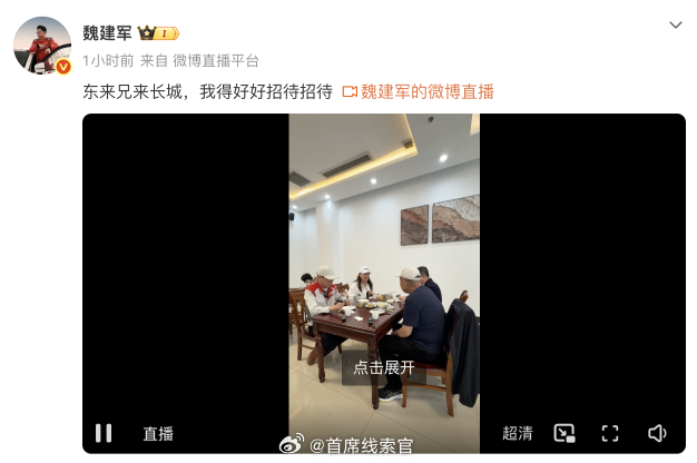 于东来到访长城汽车,魏建军与他开启了直播。两人还一起吃食堂,挺好的。308_IO