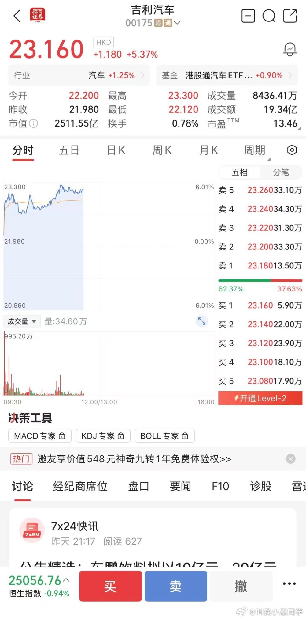 吉利大涨 吉利这波确实猛,股价一个月涨了近50%,销量也干到中国品牌第一,70多万辆的季度成绩够硬核啊!高端品牌撑住了,海外也翻倍增长,再加上新车一波接一波,感觉不是虚火,是真有料。手里有票的估计笑得合不拢嘴,没上车的可能有点拍大腿了
